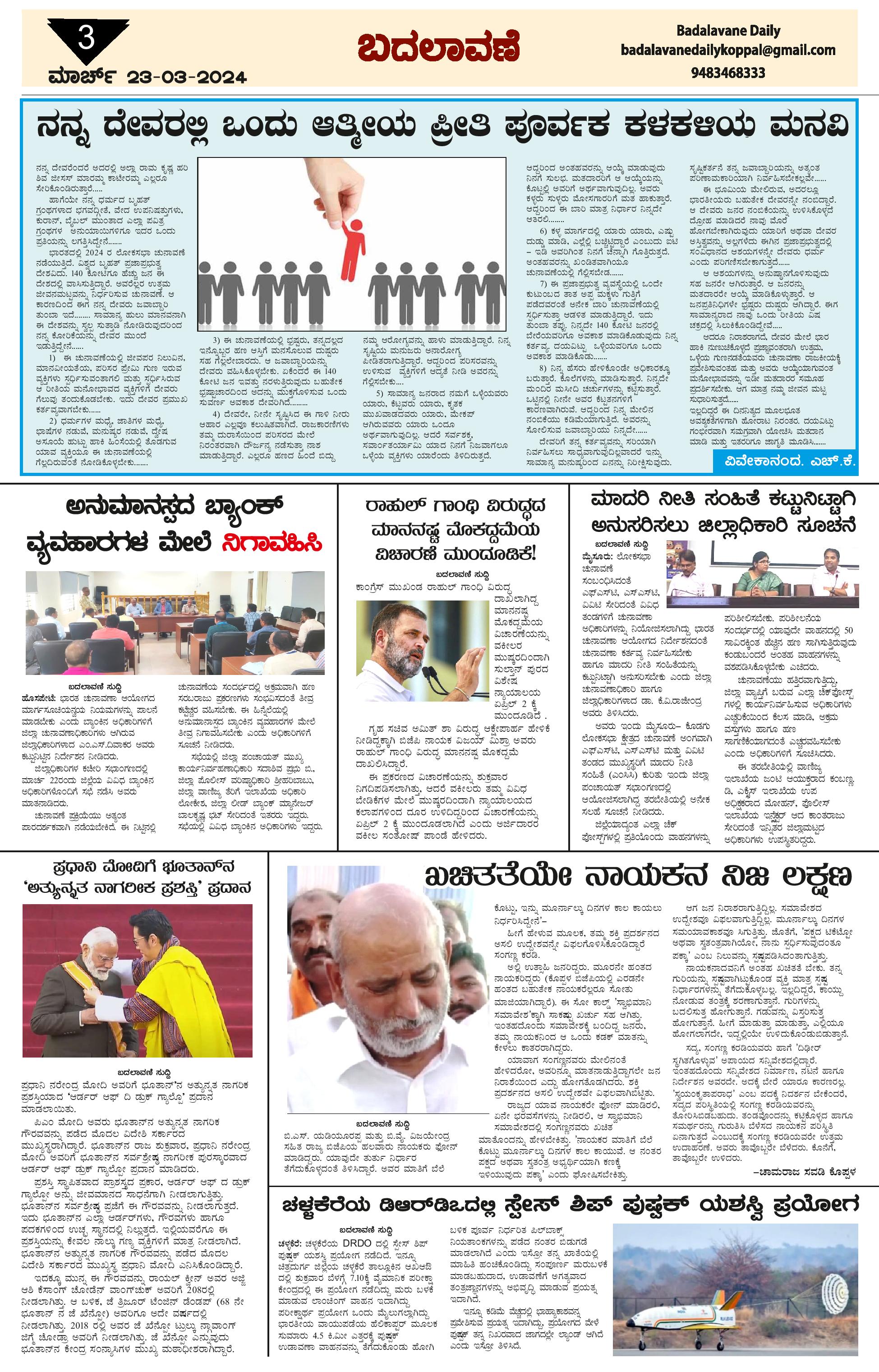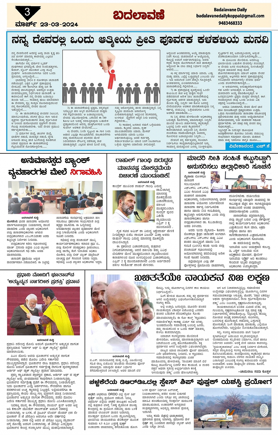 ಬದಲಾವಣೆ 23 Mar 2024 Page: 3 March 23, 2024 << First << 3 >> Last >> Page 1Page 2Page 3Page 4 × ಬದಲಾವಣೆ 23 Mar 2024 page-1page-2page-3page-4 << First << 3 >> Last >> page-1page-2page-3page-4 page-3