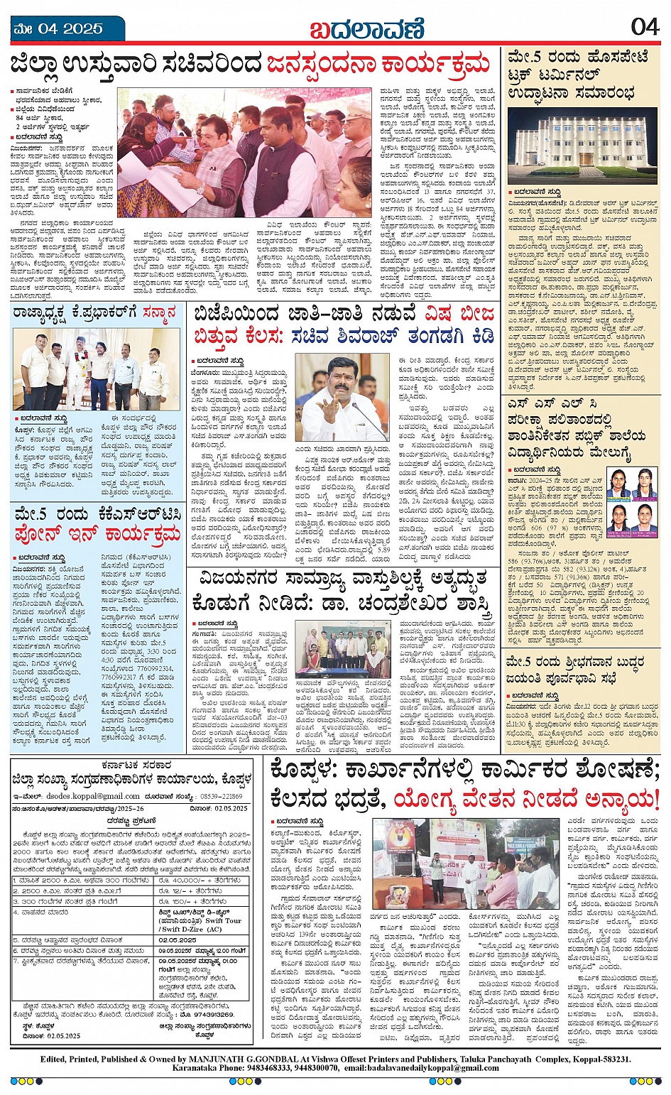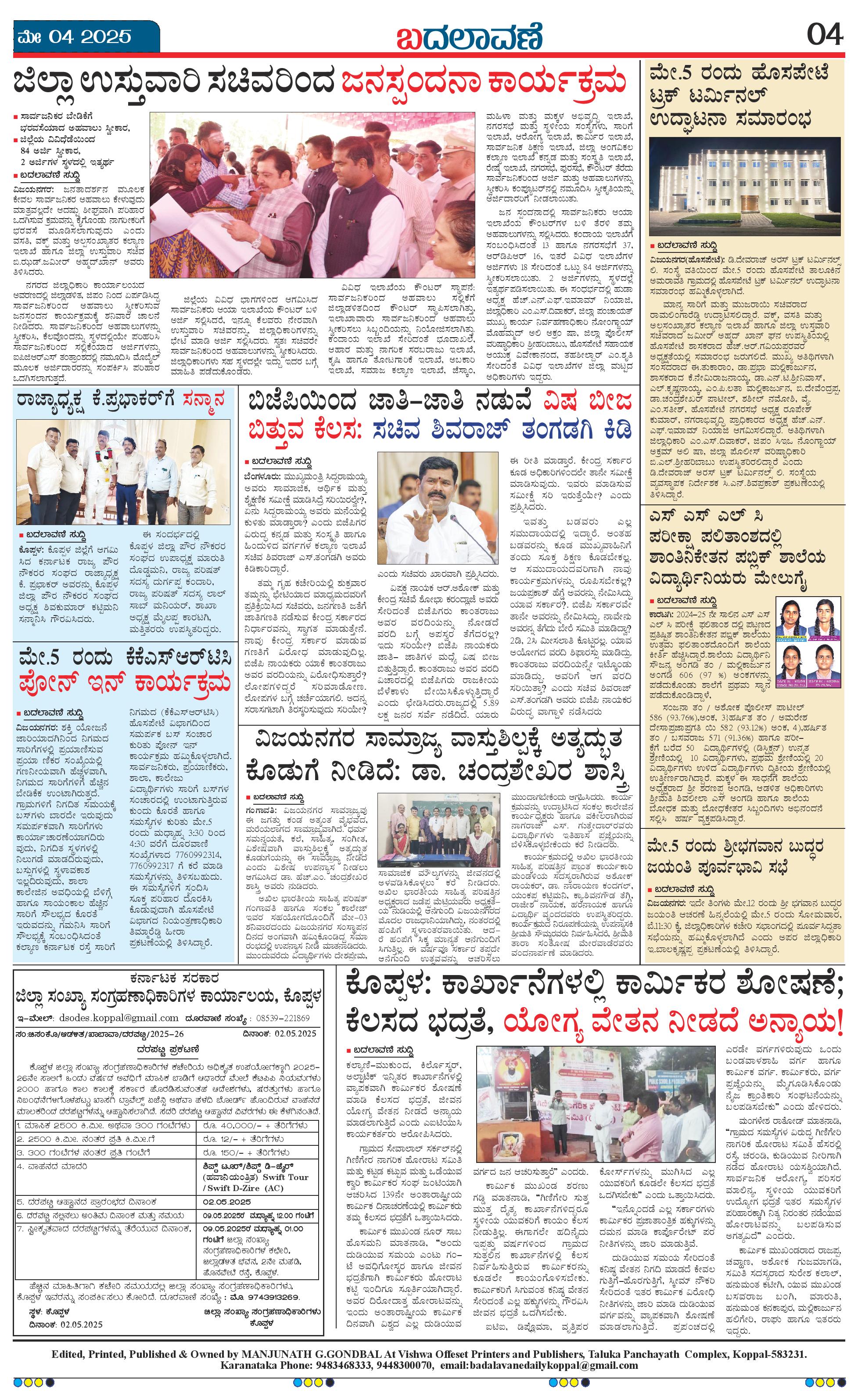ಬದಲಾವಣೆ 04 MAY 2025 Page: 4 May 04, 2025 << First << 4 >> Last >> Page 1Page 2Page 3Page 4 × ಬದಲಾವಣೆ 04 MAY 2025 page-1page-2page-3page-4 << First << 4 >> Last >> page-1page-2page-3page-4 page-4