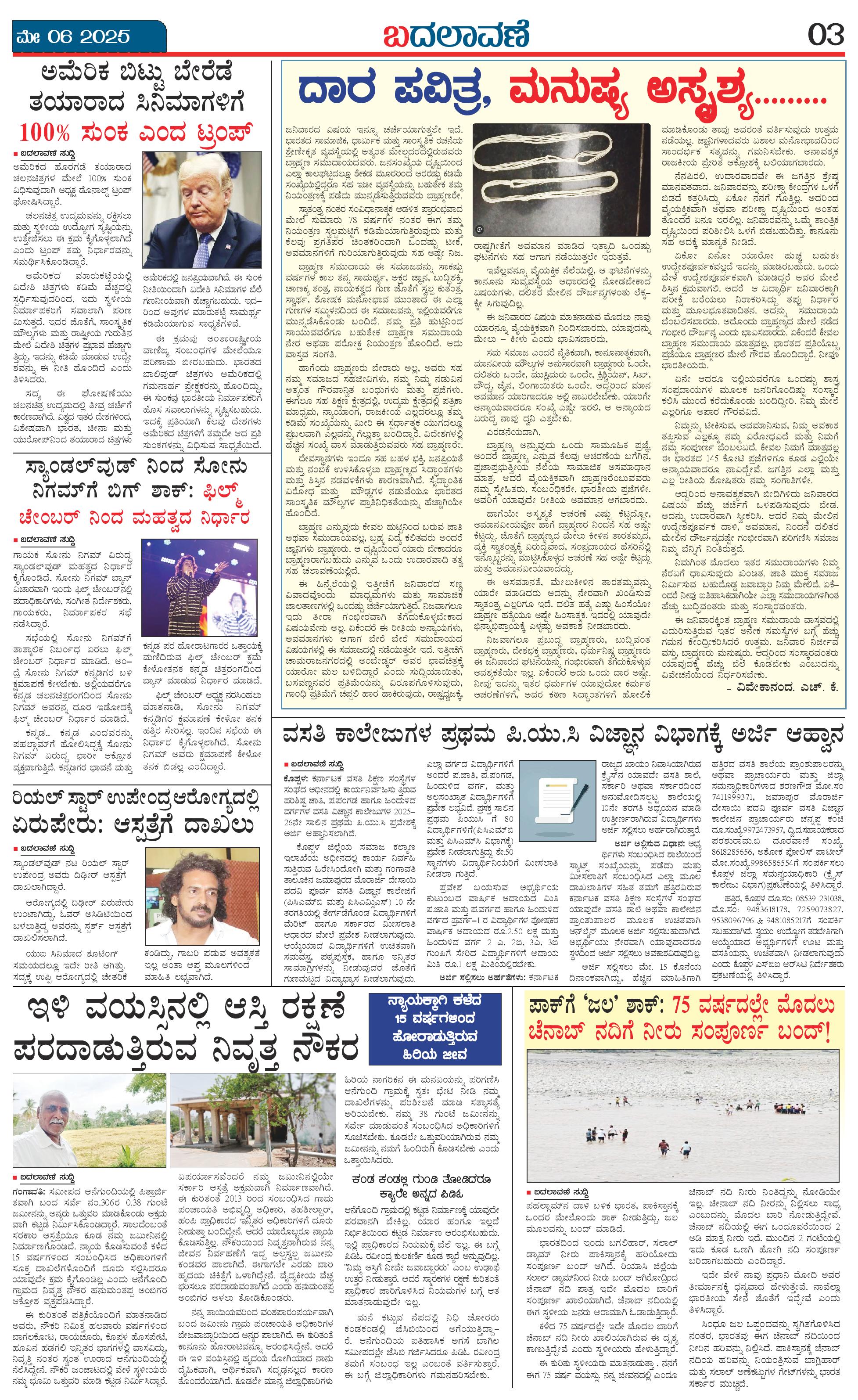 ಬದಲಾವಣೆ 06 MAY 2025 Page: 3 May 06, 2025 << First << 3 >> Last >> Page 1Page 2Page 3Page 4 × ಬದಲಾವಣೆ 06 MAY 2025 page-1page-2page-3page-4 << First << 3 >> Last >> page-1page-2page-3page-4 page-3