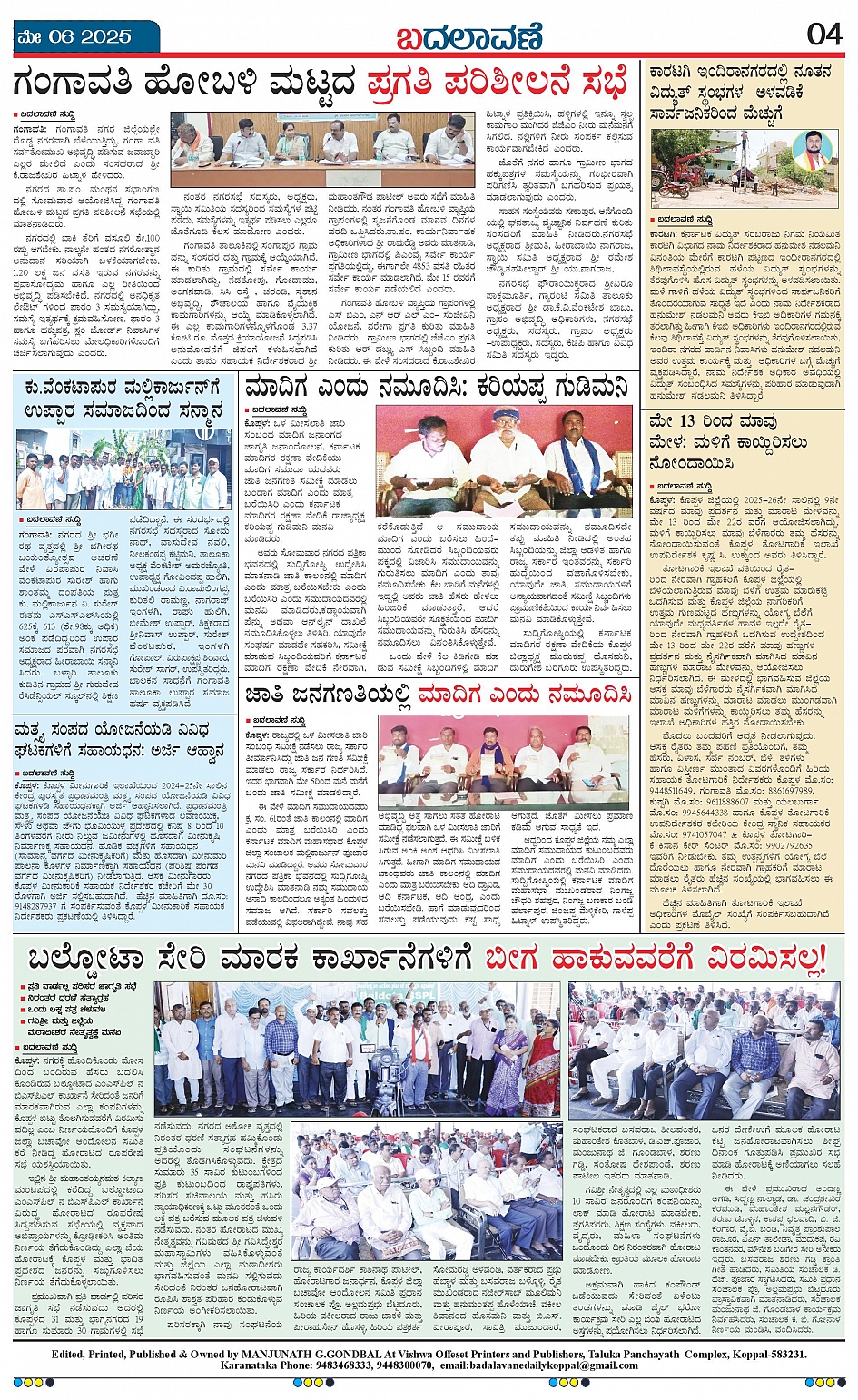 ಬದಲಾವಣೆ 06 MAY 2025 Page: 4 May 06, 2025 << First << 4 >> Last >> Page 1Page 2Page 3Page 4 × ಬದಲಾವಣೆ 06 MAY 2025 page-1page-2page-3page-4 << First << 4 >> Last >> page-1page-2page-3page-4 page-4