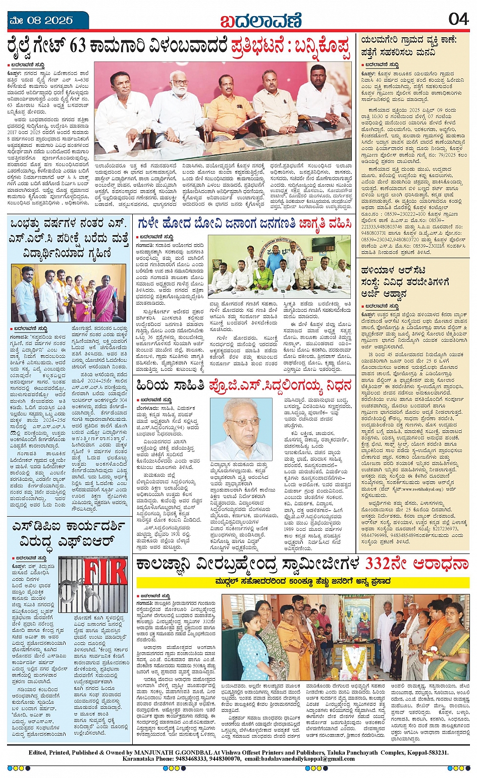 ಬದಲಾವಣೆ 08 MAY 2025 Page: 4 May 08, 2025 << First << 4 >> Last >> Page 1Page 2Page 3Page 4 × ಬದಲಾವಣೆ 08 MAY 2025 page-1page-2page-3page-4 << First << 4 >> Last >> page-1page-2page-3page-4 page-4