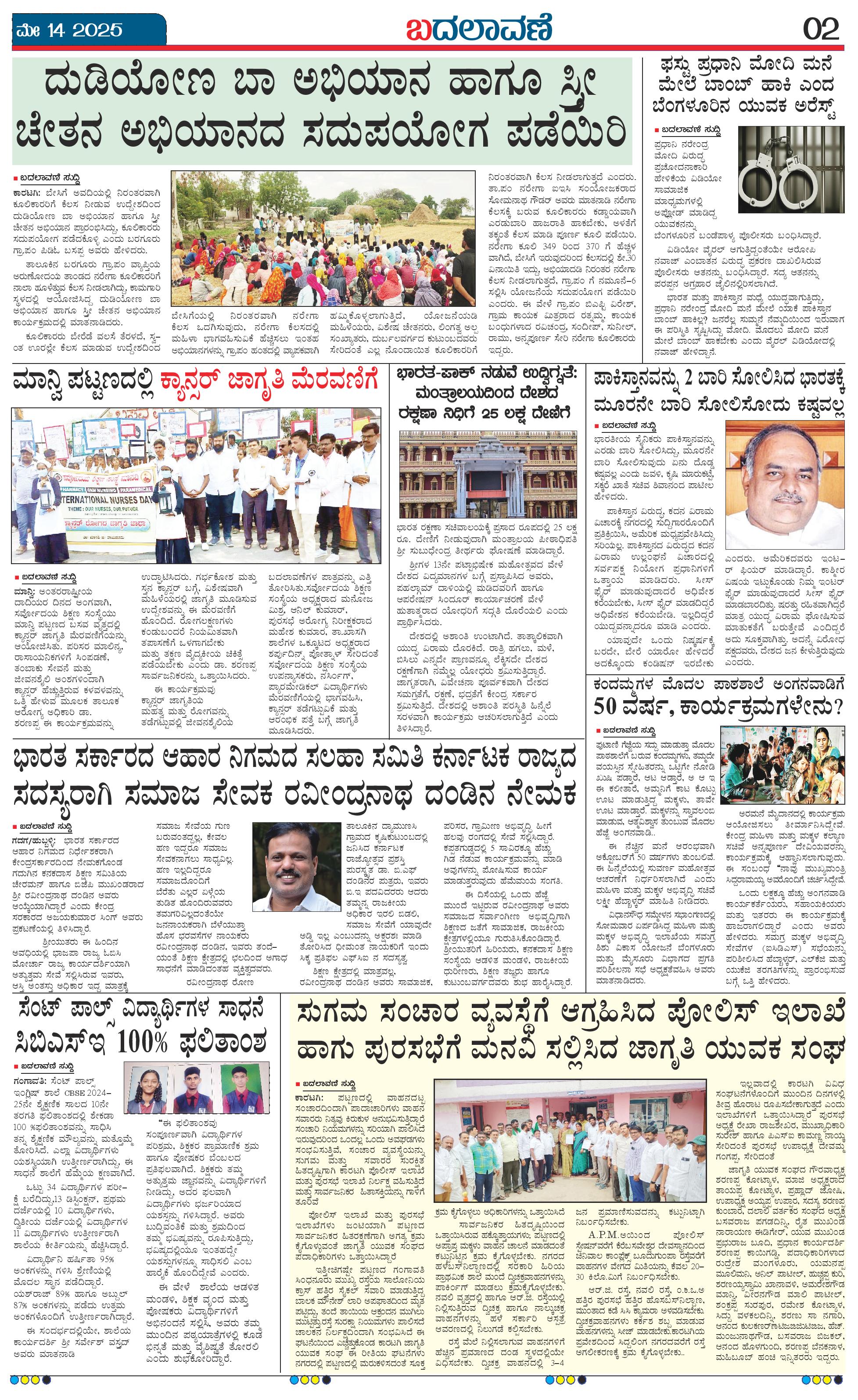 ಬದಲಾವಣೆ 14 MAY 2025 Page: 2 May 14, 2025 << First << 2 >> Last >> Page 1Page 2Page 3Page 4 × ಬದಲಾವಣೆ 14 MAY 2025 page-1page-2page-3page-4 << First << 2 >> Last >> page-1page-2page-3page-4 page-2