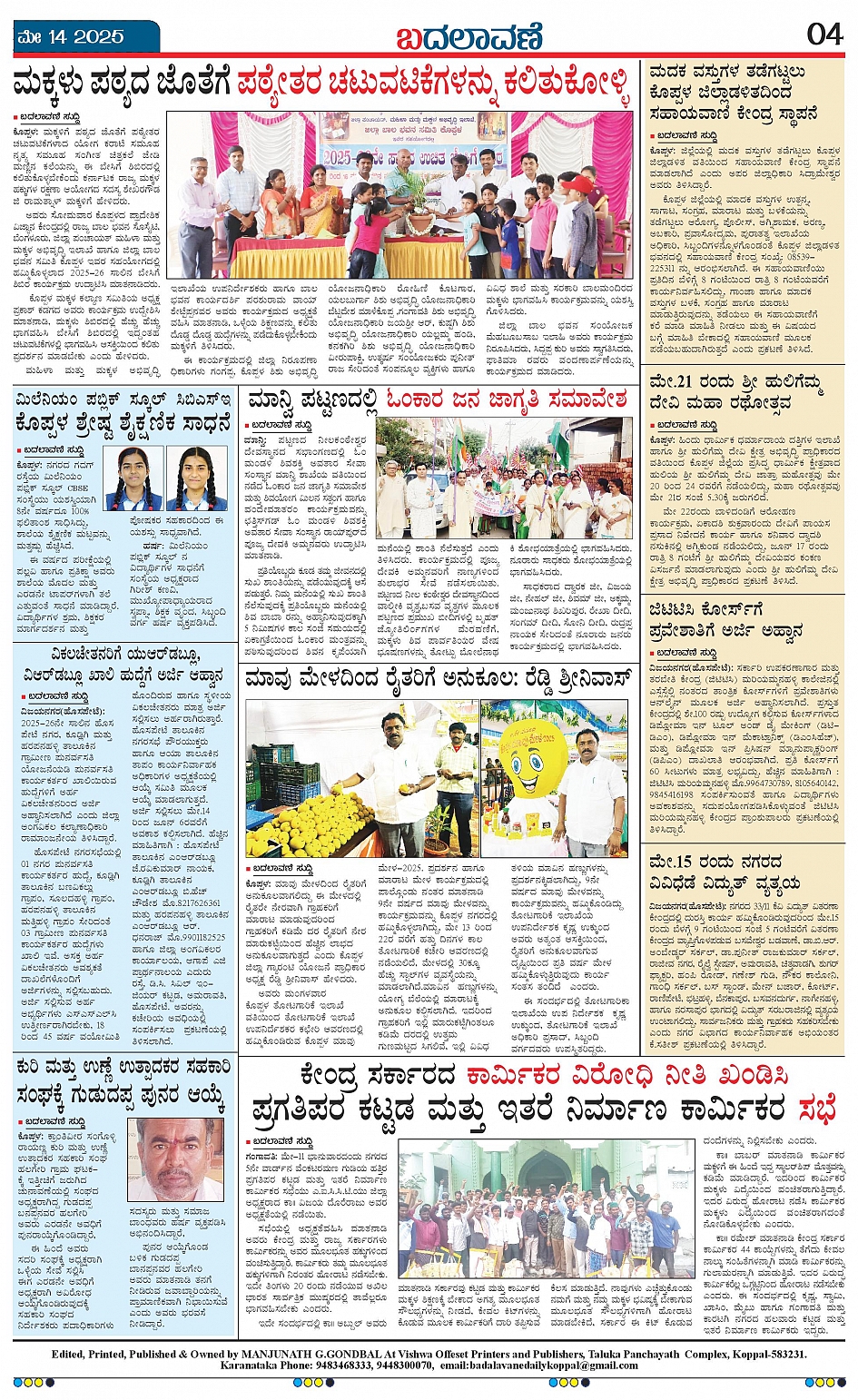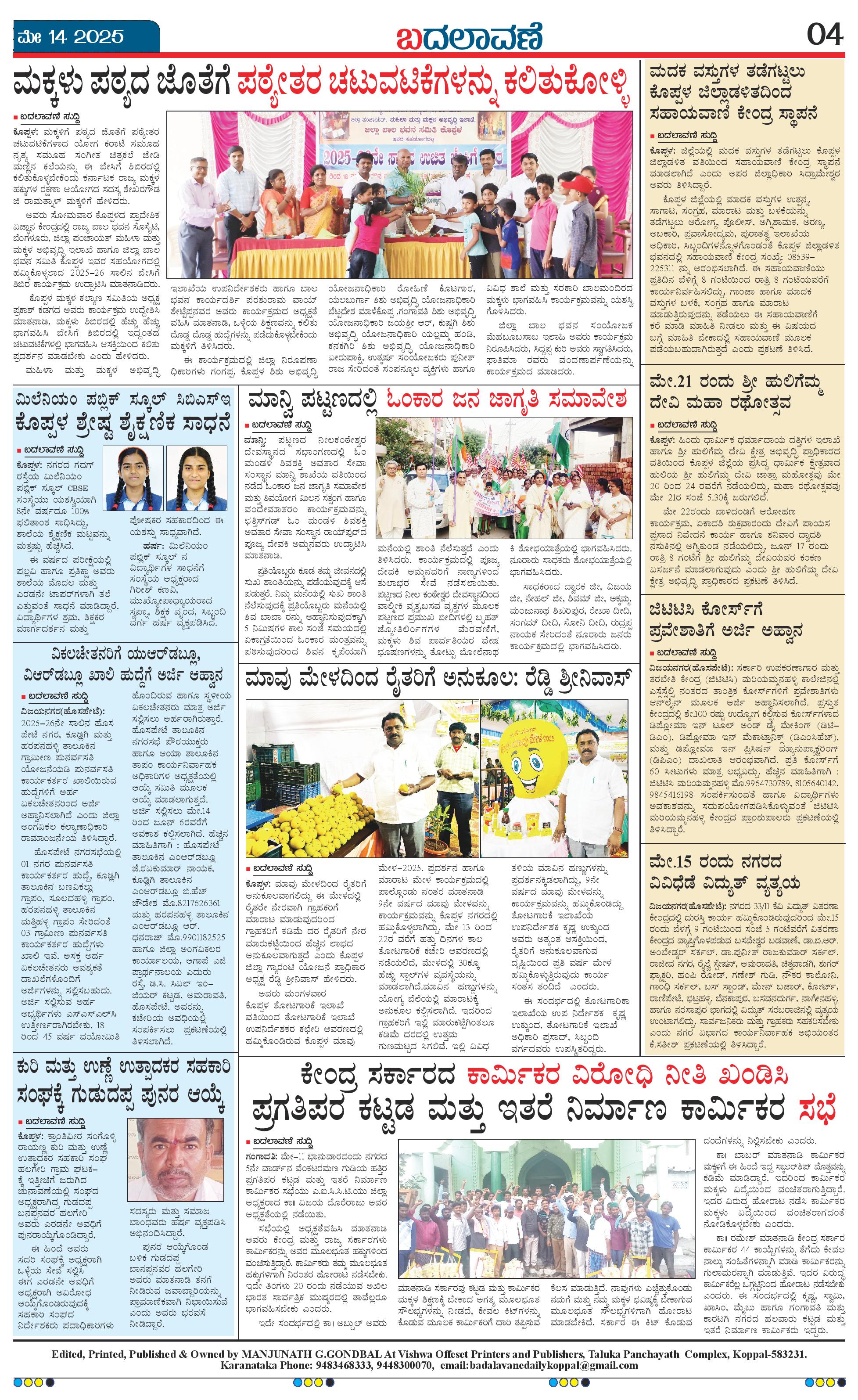 ಬದಲಾವಣೆ 14 MAY 2025 Page: 4 May 14, 2025 << First << 4 >> Last >> Page 1Page 2Page 3Page 4 × ಬದಲಾವಣೆ 14 MAY 2025 page-1page-2page-3page-4 << First << 4 >> Last >> page-1page-2page-3page-4 page-4