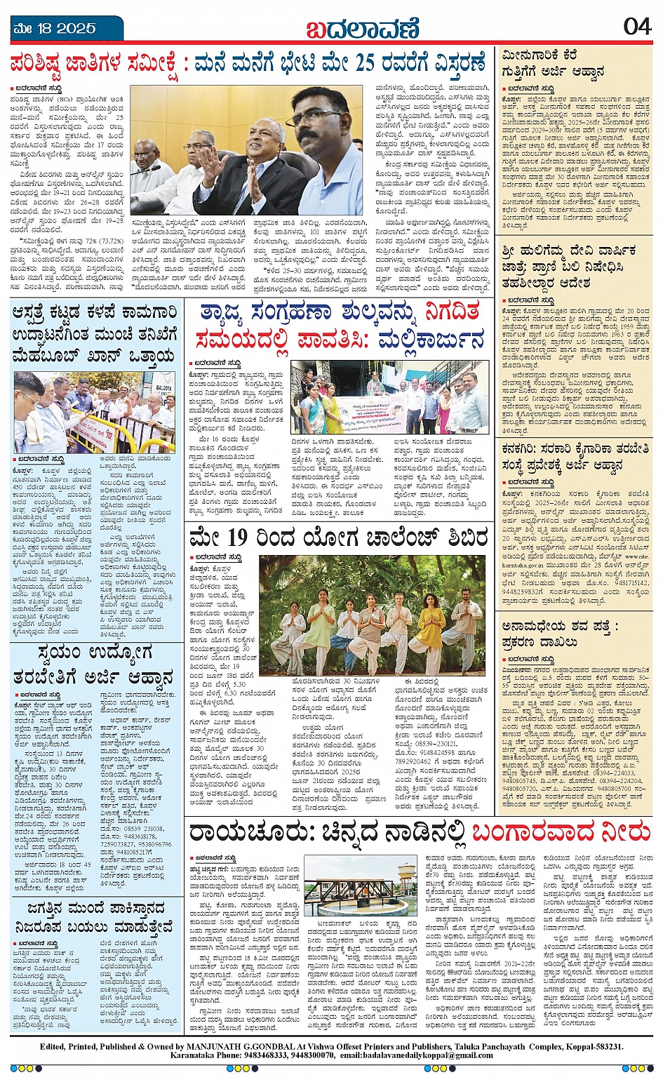 ಬದಲಾವಣೆ 18 MAY 2025 Page: 4 May 18, 2025 << First << 4 >> Last >> Page 1Page 2Page 3Page 4 × ಬದಲಾವಣೆ 18 MAY 2025 page-1page-2page-3page-4 << First << 4 >> Last >> page-1page-2page-3page-4 page-4