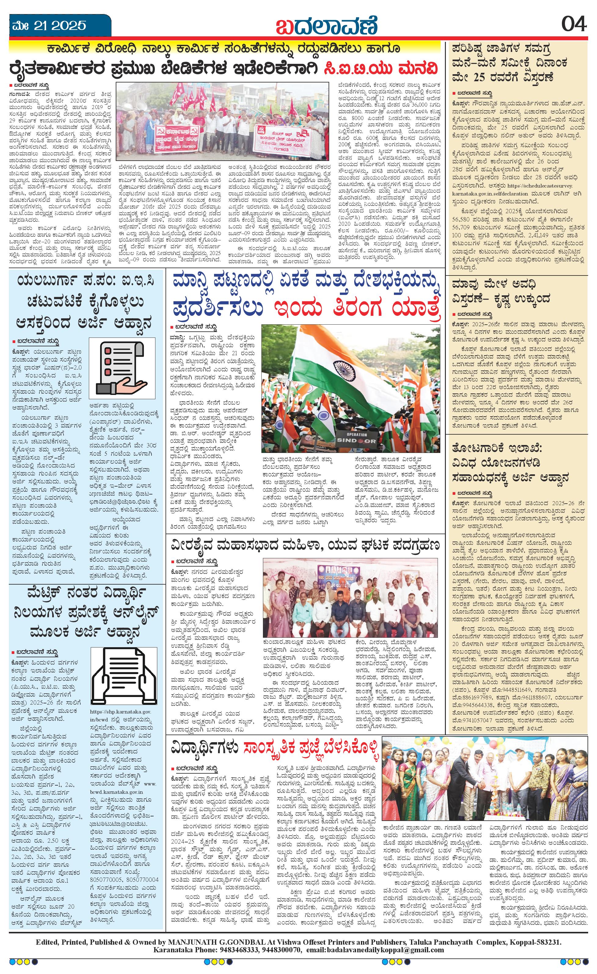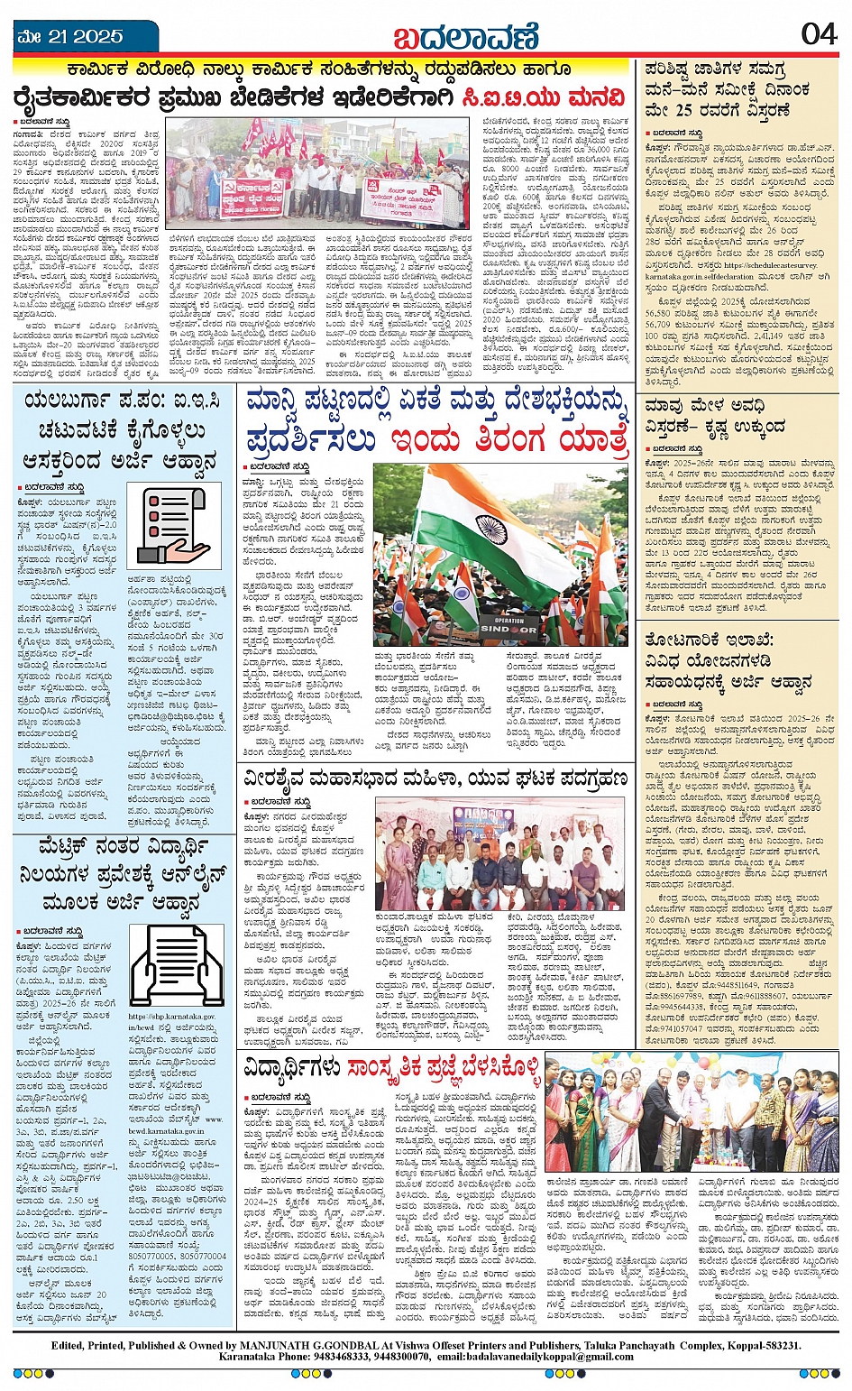 ಬದಲಾವಣೆ 21 MAY 2025 Page: 4 May 21, 2025 << First << 4 >> Last >> Page 1Page 2Page 3Page 4 × ಬದಲಾವಣೆ 21 MAY 2025 page-1page-2page-3page-4 << First << 4 >> Last >> page-1page-2page-3page-4 page-4