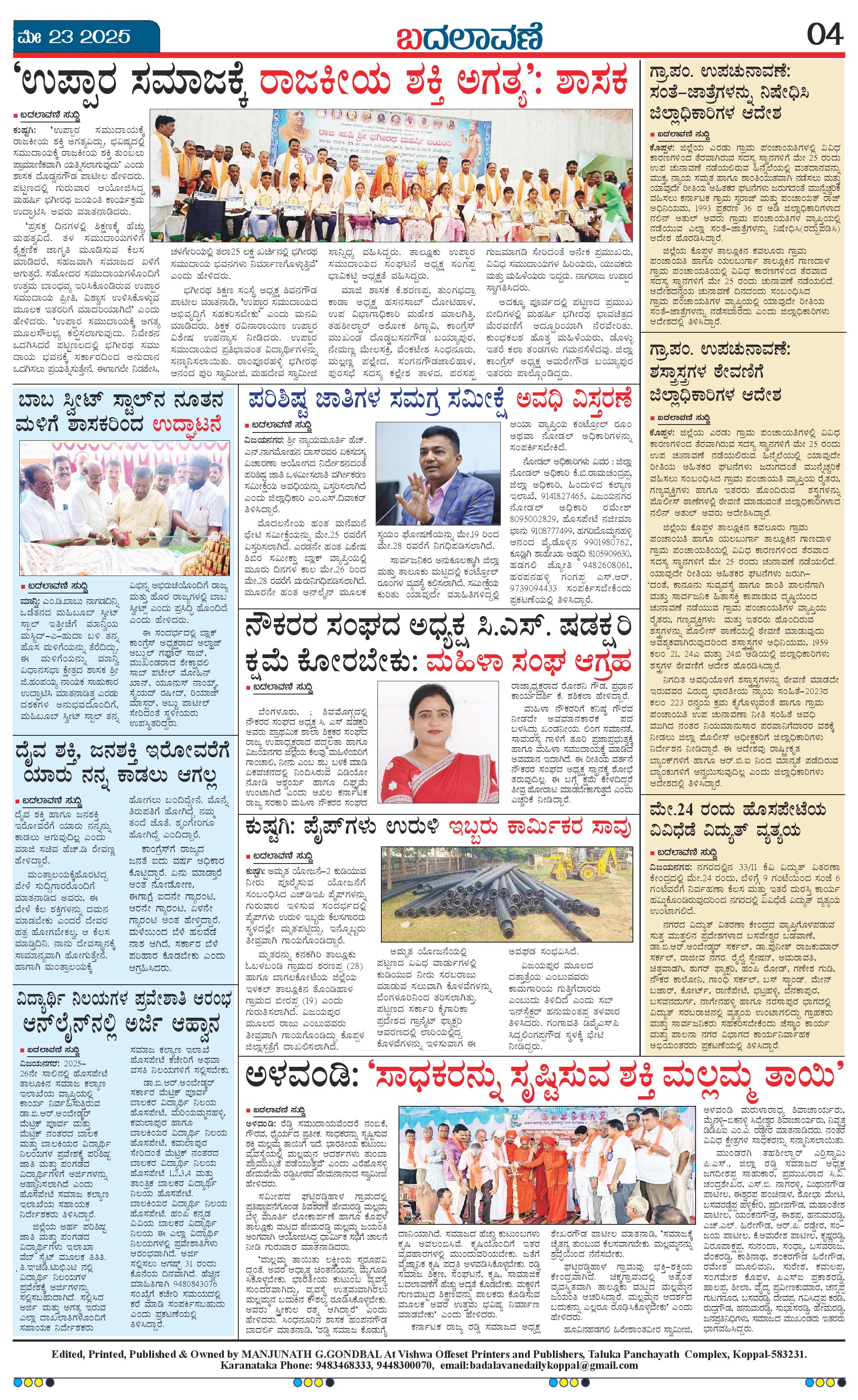 ಬದಲಾವಣೆ 23 MAY 2025 Page: 4 May 23, 2025 << First << 4 >> Last >> Page 1Page 2Page 3Page 4 × ಬದಲಾವಣೆ 23 MAY 2025 page-1page-2page-3page-4 << First << 4 >> Last >> page-1page-2page-3page-4 page-4