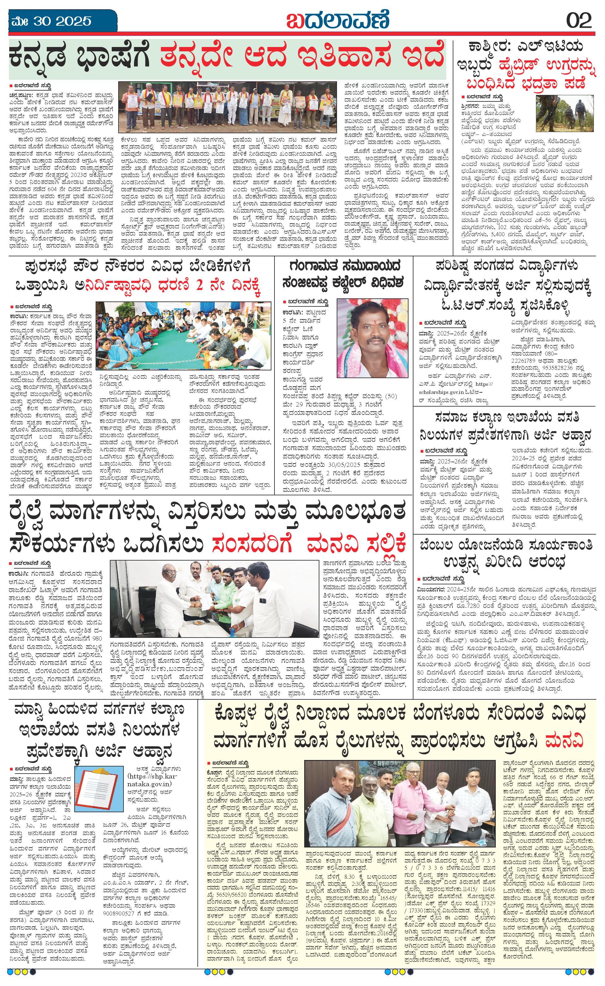 ಬದಲಾವಣೆ 30 MAY 2025 Page: 2 May 30, 2025 << First << 2 >> Last >> Page 1Page 2Page 3Page 4 × ಬದಲಾವಣೆ 30 MAY 2025 page-1page-2page-3page-4 << First << 2 >> Last >> page-1page-2page-3page-4 page-2