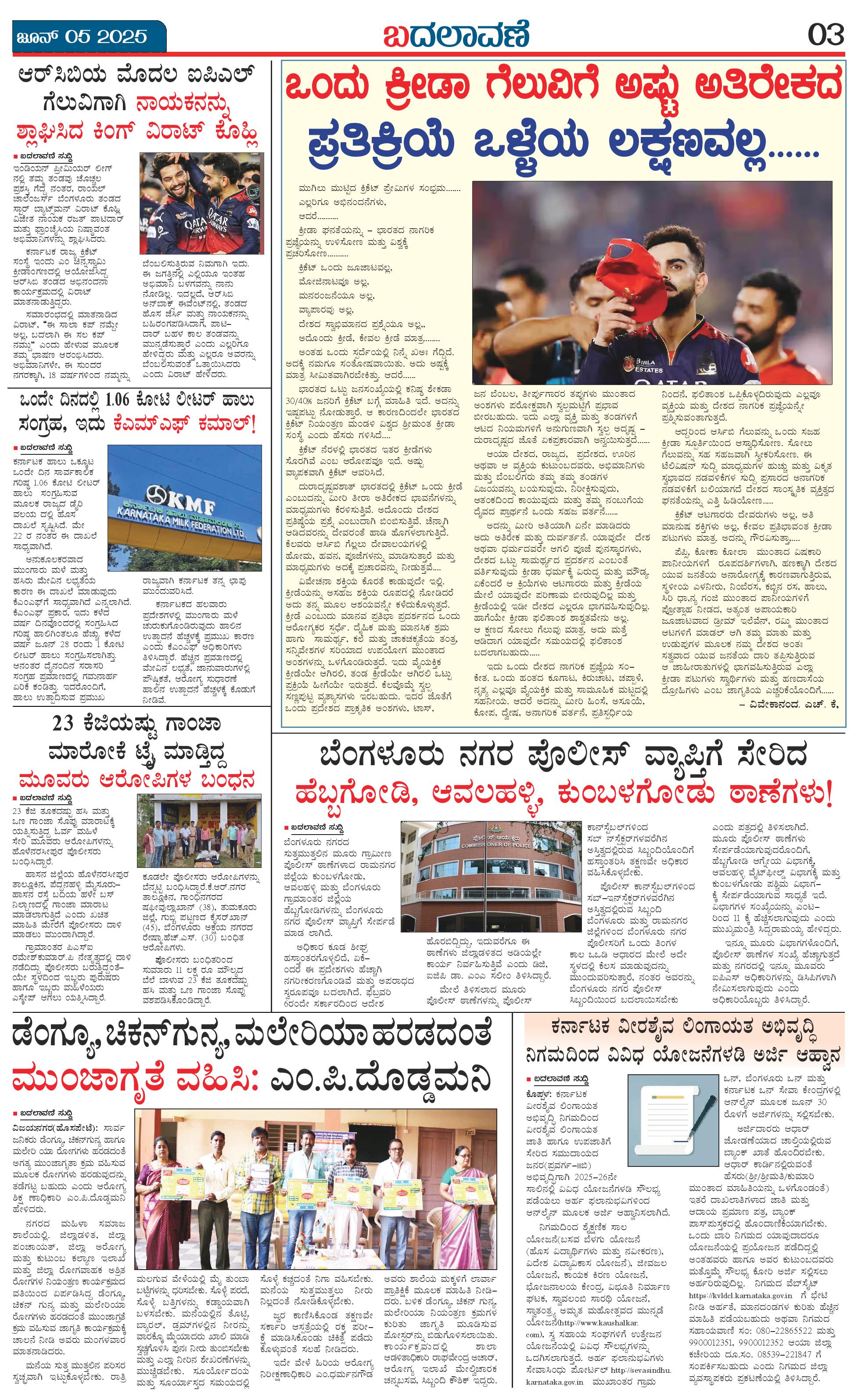 ಬದಲಾವಣೆ 05 JUNE 2025 Page: 3 June 05, 2025 << First << 3 >> Last >> Page 1Page 2Page 3Page 4 × ಬದಲಾವಣೆ 05 JUNE 2025 page-1page-2page-3page-4 << First << 3 >> Last >> page-1page-2page-3page-4 page-3
