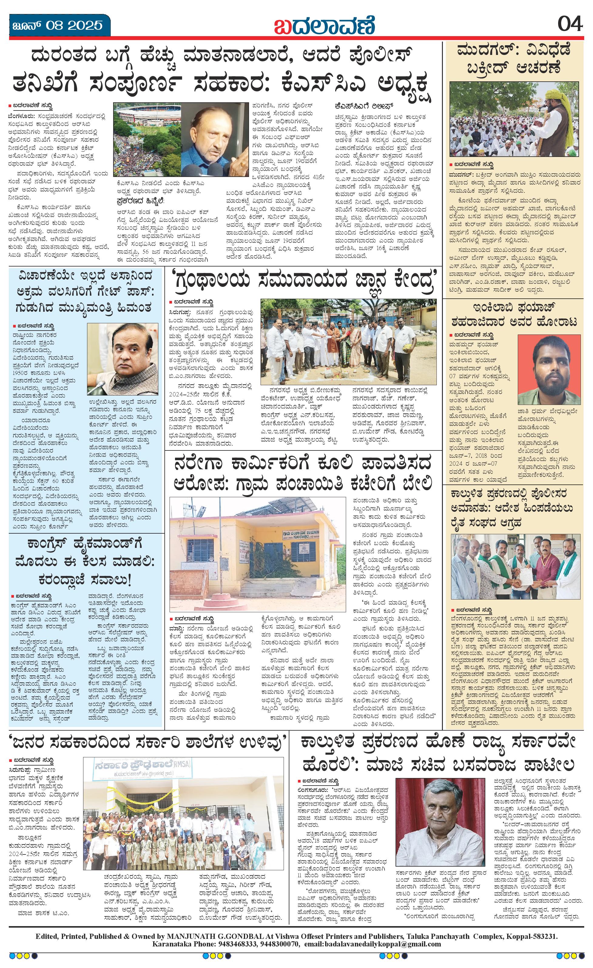 ಬದಲಾವಣೆ 08 JUNE 2025 Page: 4 June 08, 2025 << First << 4 >> Last >> Page 1Page 2Page 3Page 4 × ಬದಲಾವಣೆ 08 JUNE 2025 page-1page-2page-3page-4 << First << 4 >> Last >> page-1page-2page-3page-4 page-4