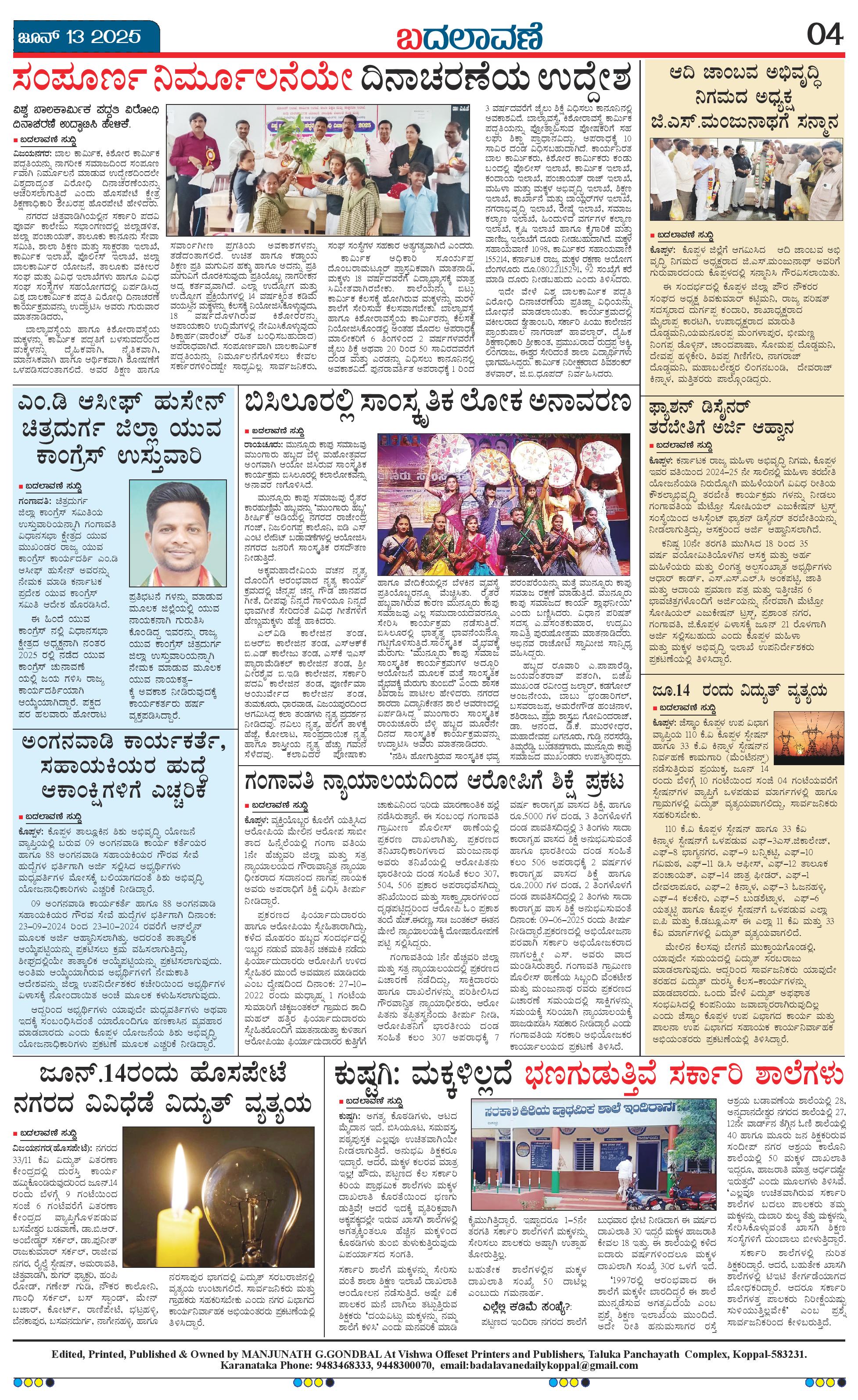ಬದಲಾವಣೆ 13 JUNE 2025 Page: 4 June 13, 2025 << First << 4 >> Last >> Page 1Page 2Page 3Page 4 × ಬದಲಾವಣೆ 13 JUNE 2025 page-1page-2page-3page-4 << First << 4 >> Last >> page-1page-2page-3page-4 page-4
