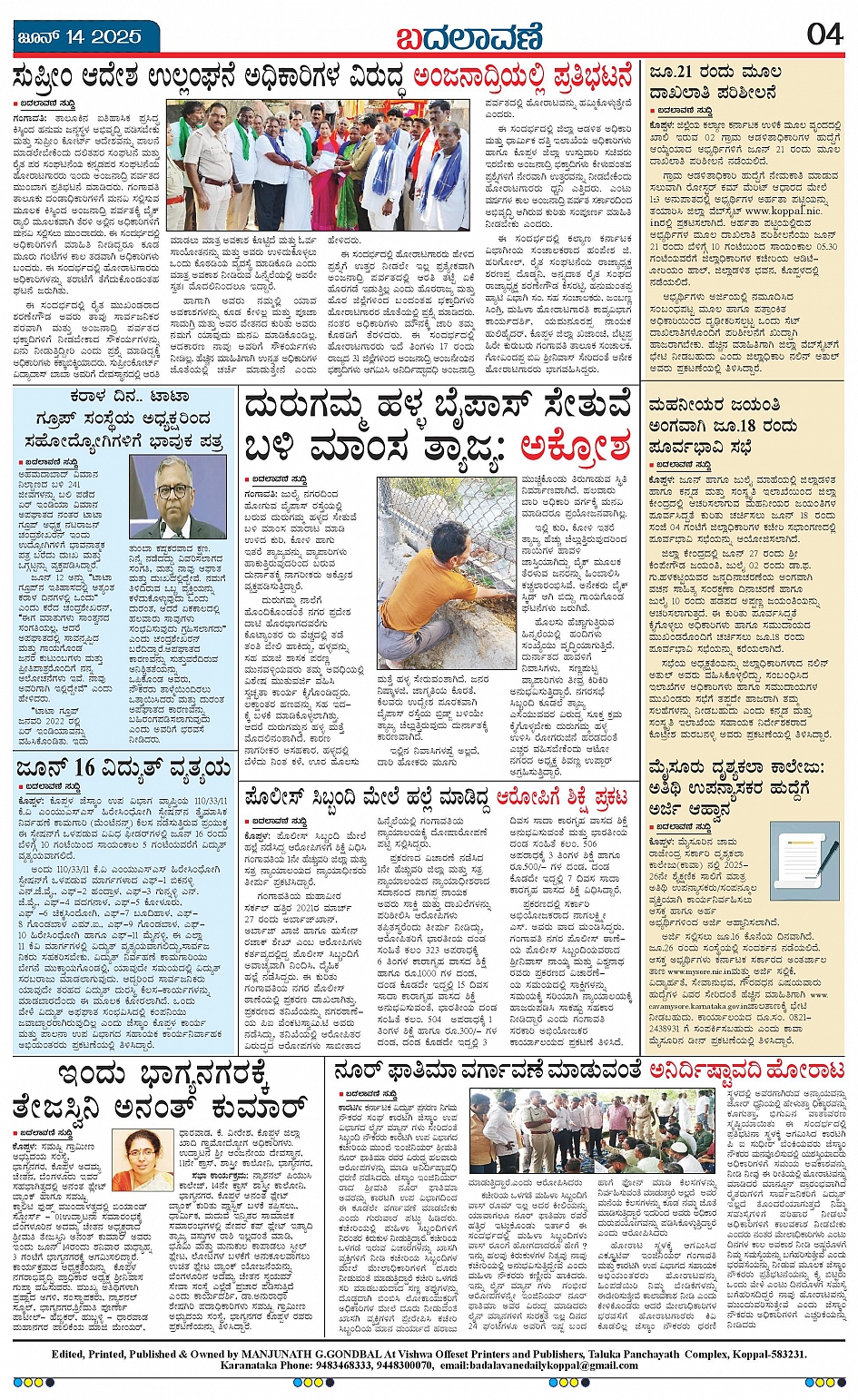 ಬದಲಾವಣೆ 14 JUNE 2025 Page: 4 June 14, 2025 << First << 4 >> Last >> Page 1Page 2Page 3Page 4 × ಬದಲಾವಣೆ 14 JUNE 2025 page-1page-2page-3page-4 << First << 4 >> Last >> page-1page-2page-3page-4 page-4