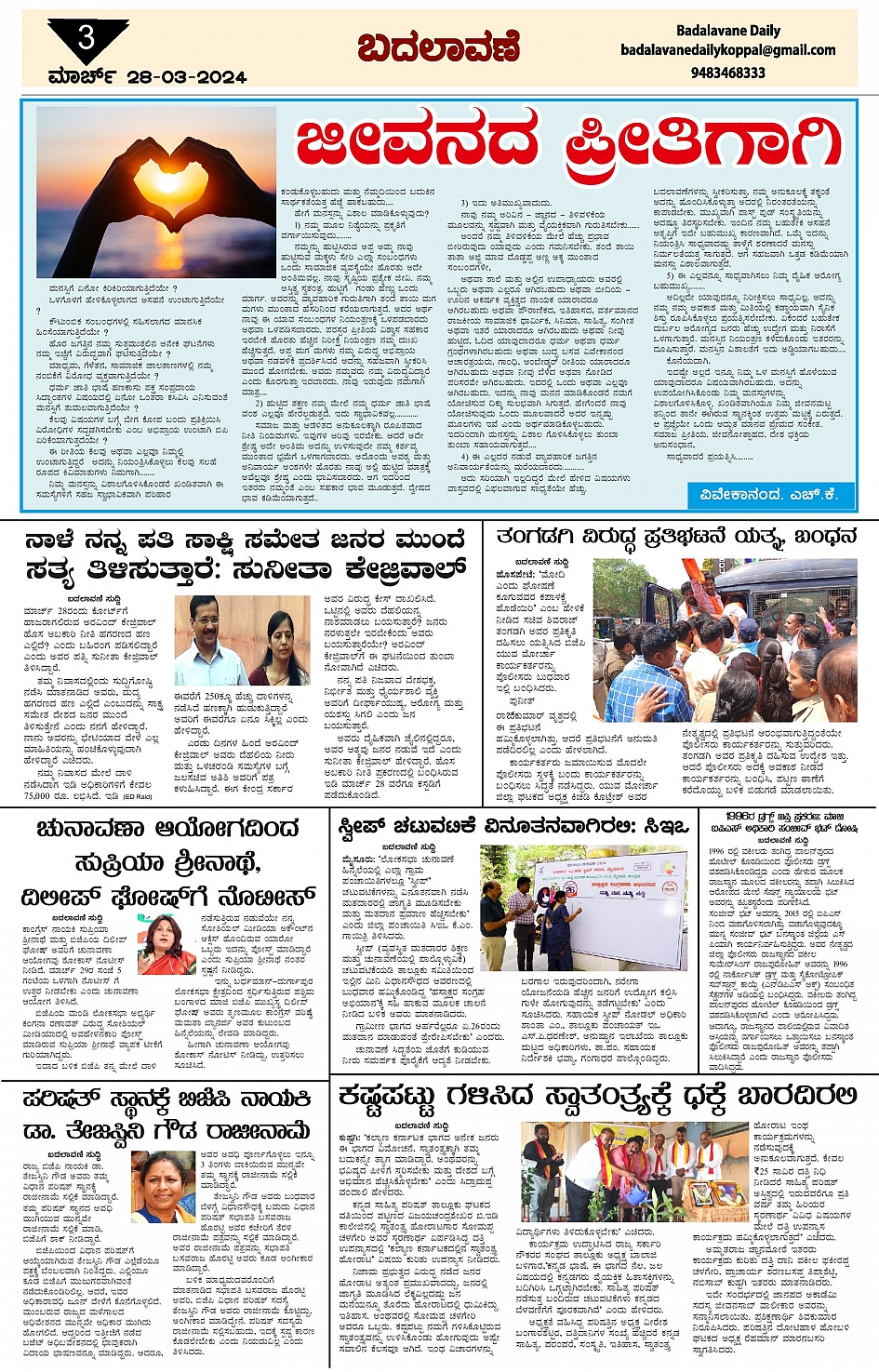 ಬದಲಾವಣೆ 28 Mar 2024 Page: 3 March 28, 2024 << First << 3 >> Last >> Page 1Page 2Page 3Page 4 × ಬದಲಾವಣೆ 28 Mar 2024 page-1page-2page-3page-4 << First << 3 >> Last >> page-1page-2page-3page-4 page-3