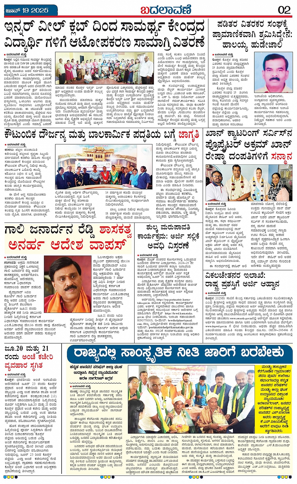 ಬದಲಾವಣೆ 19 JUNE 2025 Page: 2 June 19, 2025 << First << 2 >> Last >> Page 1Page 2Page 3Page 4 × ಬದಲಾವಣೆ 19 JUNE 2025 page-1page-2page-3page-4 << First << 2 >> Last >> page-1page-2page-3page-4 page-2