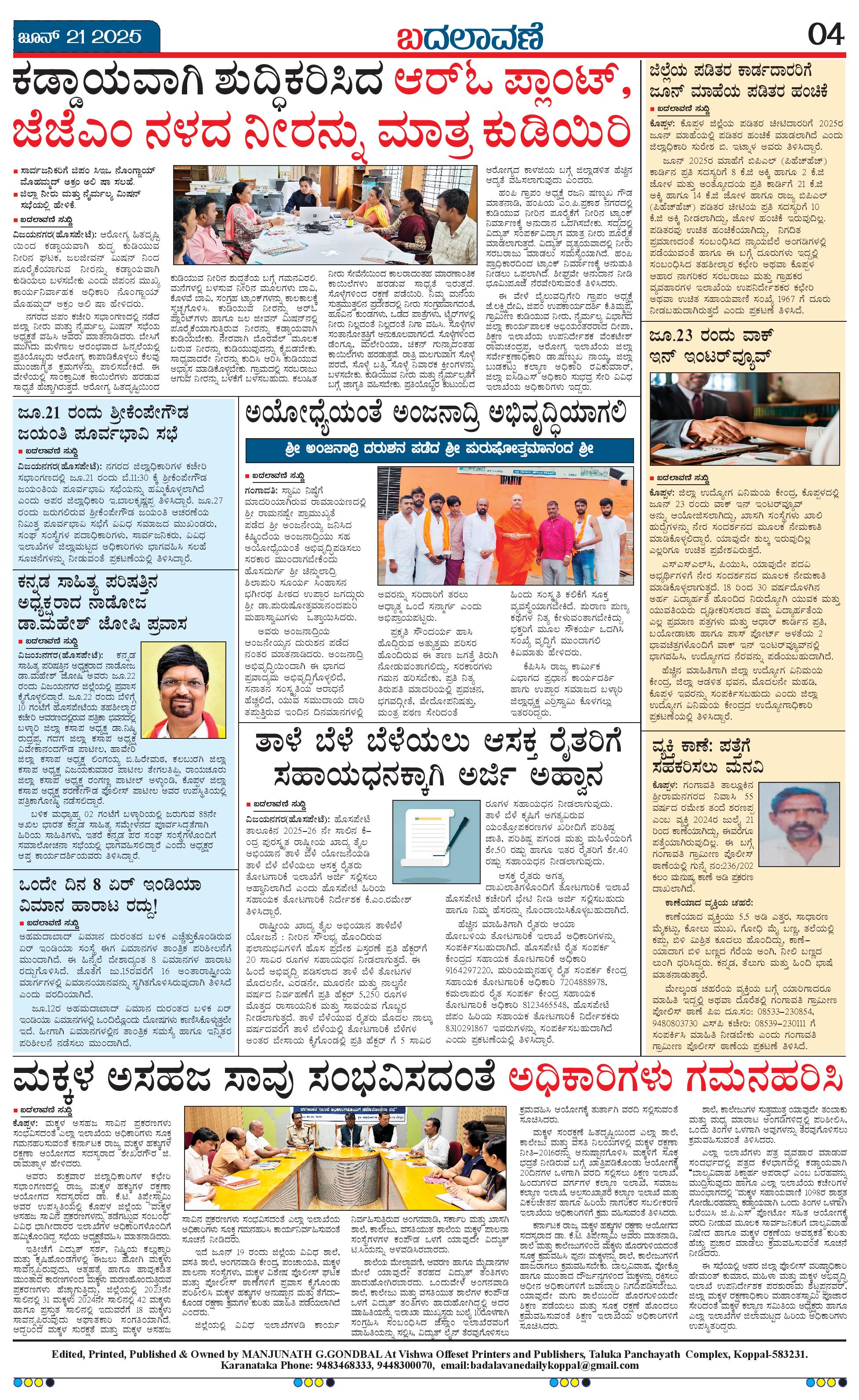 ಬದಲಾವಣೆ 21 JUNE 2025 Page: 4 June 21, 2025 << First << 4 >> Last >> Page 1Page 2Page 3Page 4 × ಬದಲಾವಣೆ 21 JUNE 2025 page-1page-2page-3page-4 << First << 4 >> Last >> page-1page-2page-3page-4 page-4