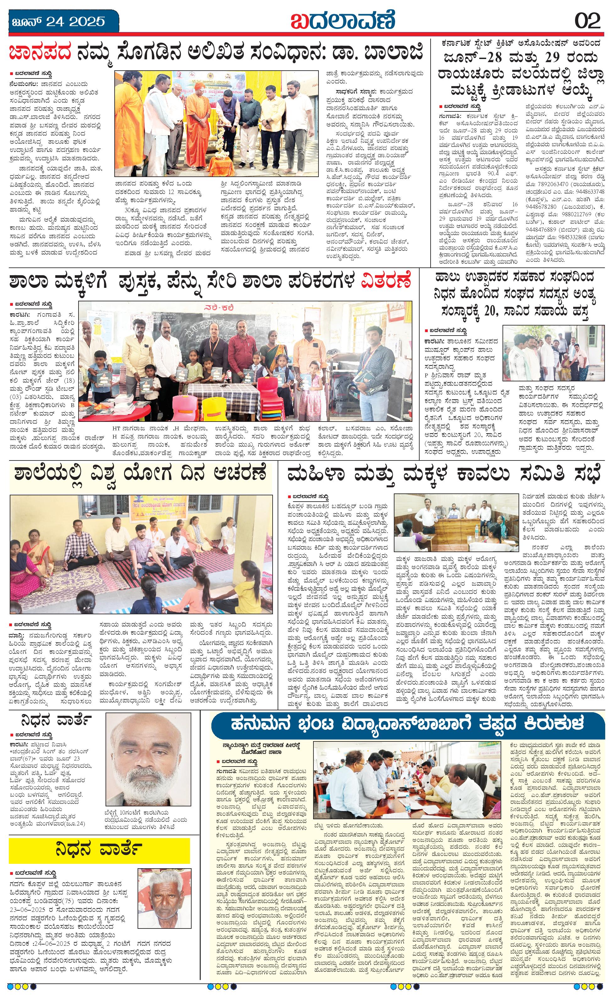 ಬದಲಾವಣೆ 24 JUNE 2025 Page: 2 June 24, 2025 << First << 2 >> Last >> Page 1Page 2Page 3Page 4 × ಬದಲಾವಣೆ 24 JUNE 2025 page-1page-2page-3page-4 << First << 2 >> Last >> page-1page-2page-3page-4 page-2