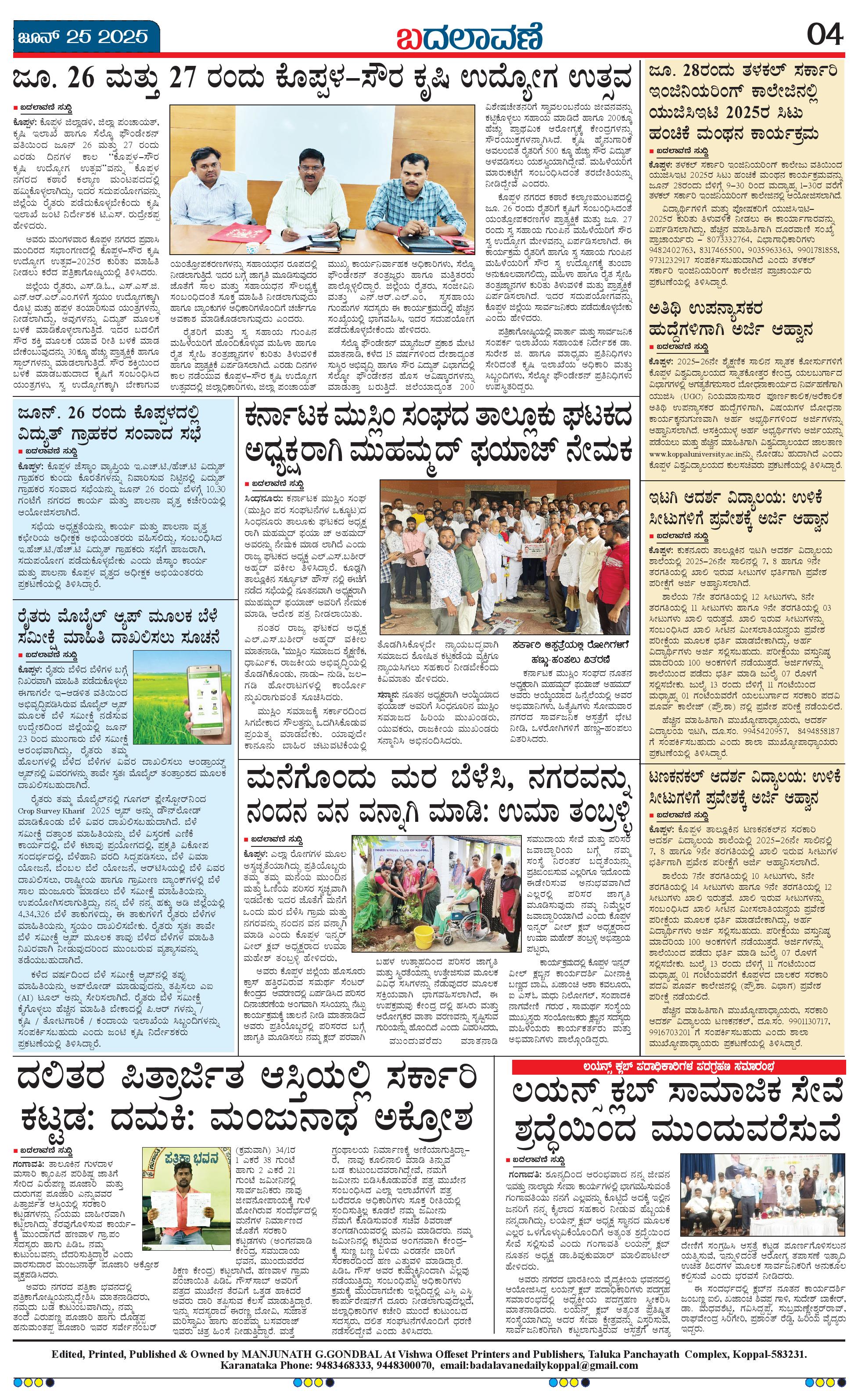 ಬದಲಾವಣೆ 25 JUNE 2025 Page: 4 June 25, 2025 << First << 4 >> Last >> Page 1Page 2Page 3Page 4 × ಬದಲಾವಣೆ 25 JUNE 2025 page-1page-2page-3page-4 << First << 4 >> Last >> page-1page-2page-3page-4 page-4