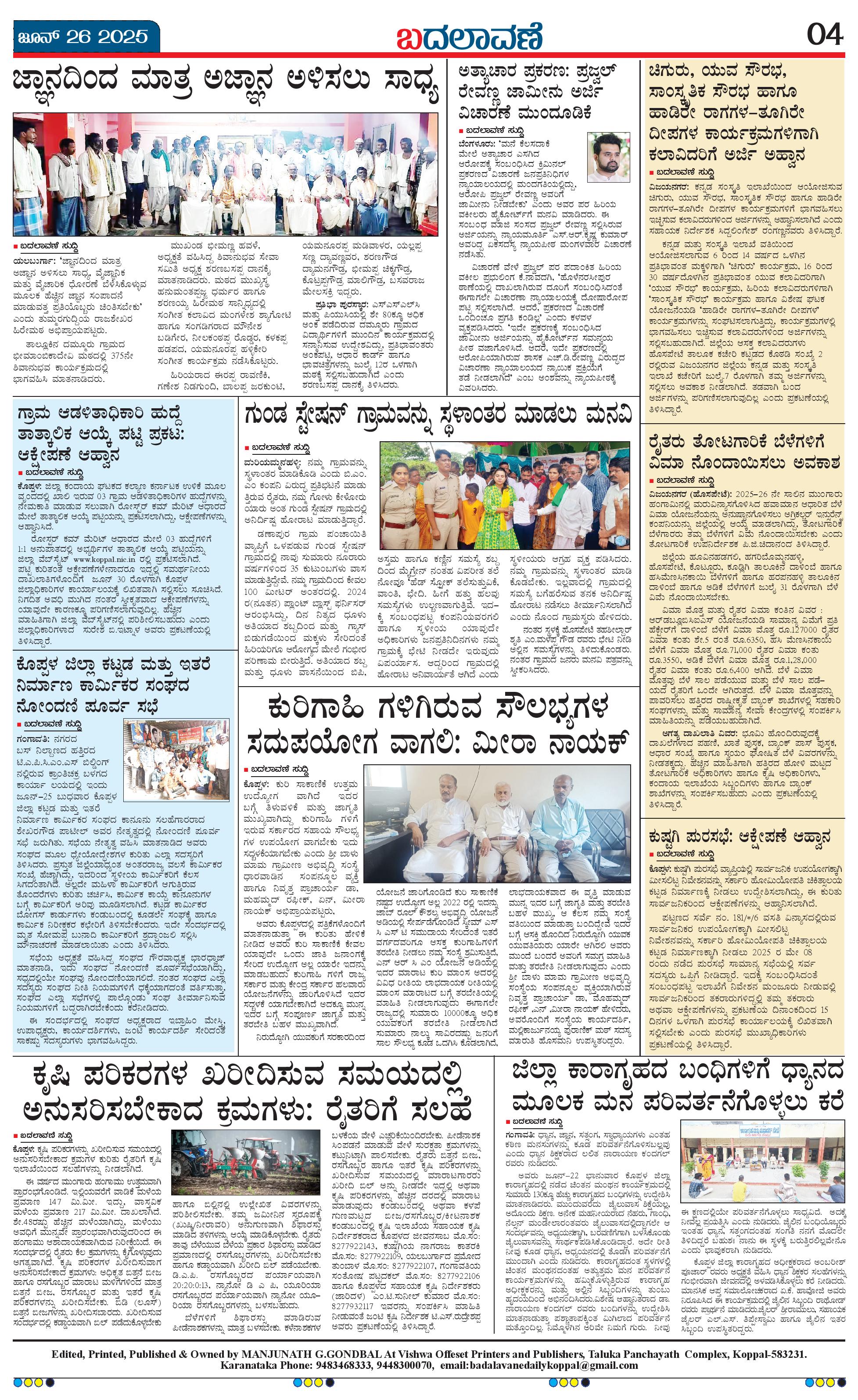 ಬದಲಾವಣೆ 26 JUNE 2025 Page: 4 June 26, 2025 << First << 4 >> Last >> Page 1Page 2Page 3Page 4 × ಬದಲಾವಣೆ 26 JUNE 2025 page-1page-2page-3page-4 << First << 4 >> Last >> page-1page-2page-3page-4 page-4