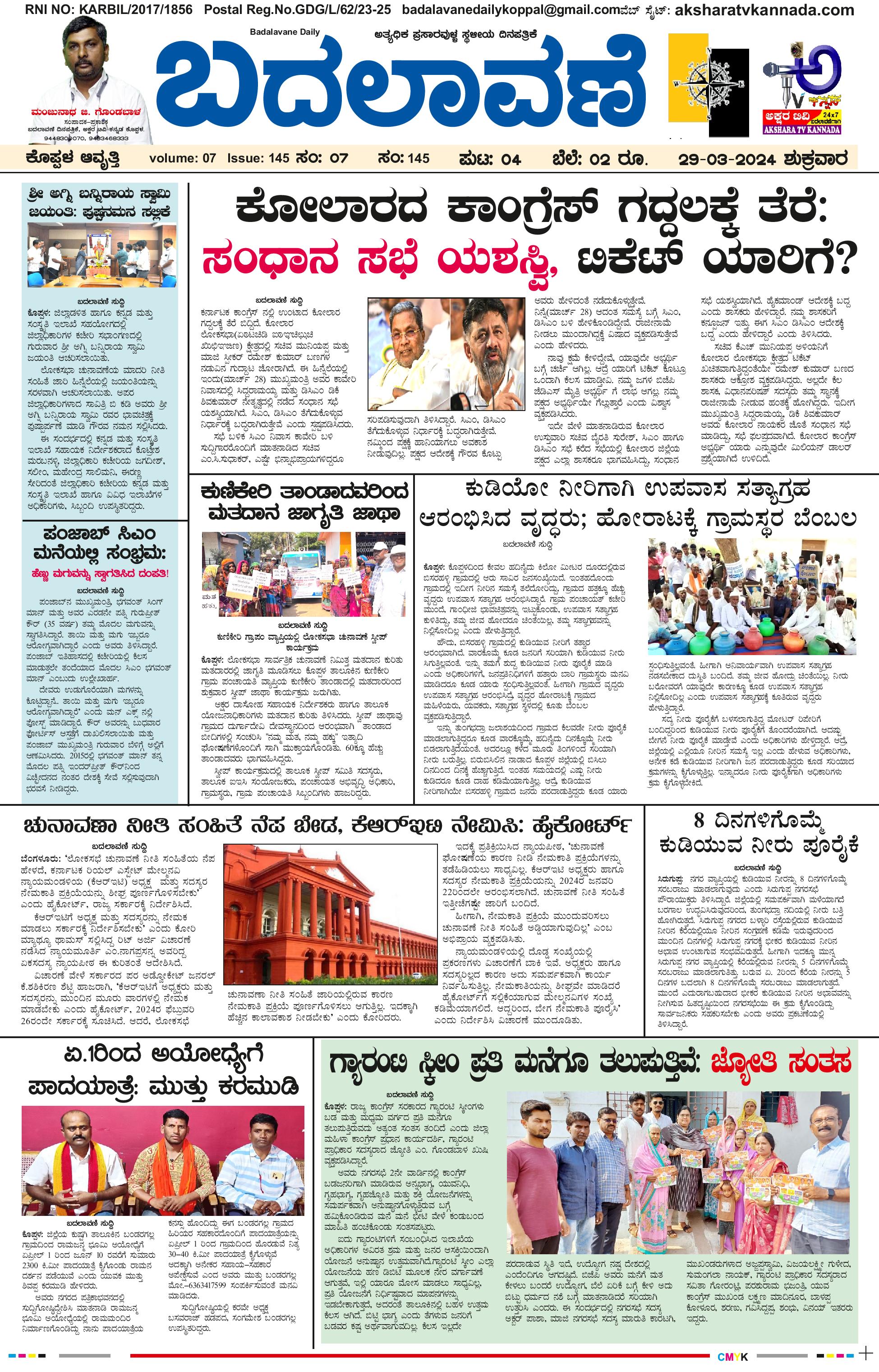 ಬದಲಾವಣೆ 29 Mar 2024 March 29, 2024 << First << 1 >> Last >> Page 1Page 2Page 3Page 4 × ಬದಲಾವಣೆ 29 Mar 2024 page-1page-2page-3page-4 << First << 1 >> Last >> page-1page-2page-3page-4 page-1