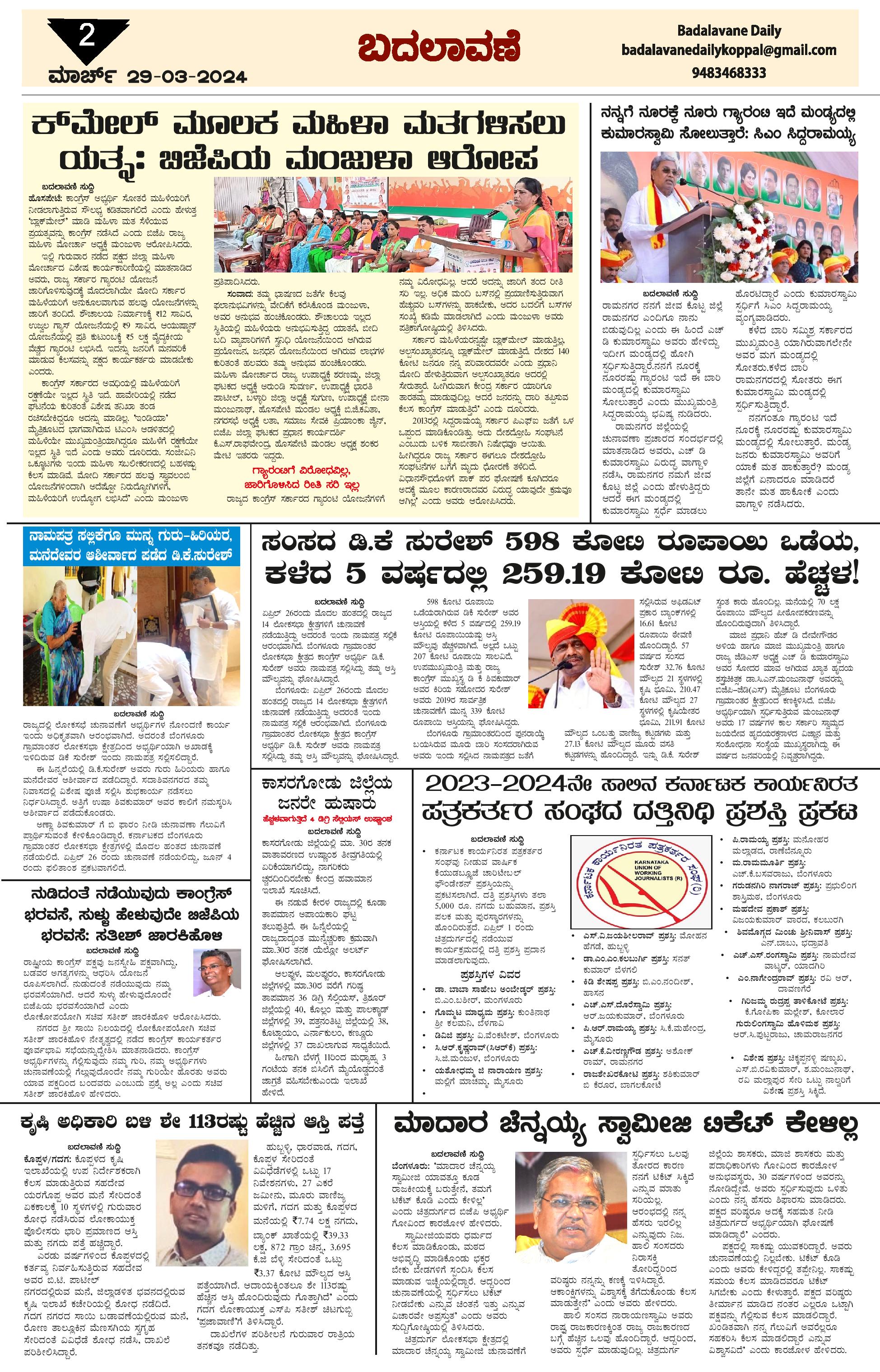 ಬದಲಾವಣೆ 29 Mar 2024 Page: 2 March 29, 2024 << First << 2 >> Last >> Page 1Page 2Page 3Page 4 × ಬದಲಾವಣೆ 29 Mar 2024 page-1page-2page-3page-4 << First << 2 >> Last >> page-1page-2page-3page-4 page-2