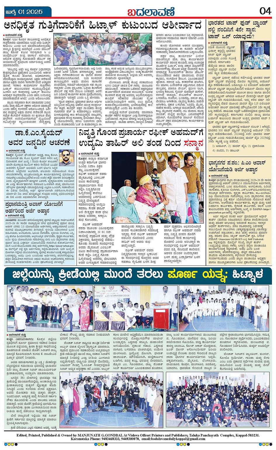ಬದಲಾವಣೆ 01 JULY 2025 Page: 4 July 01, 2025 << First << 4 >> Last >> Page 1Page 2Page 3Page 4 × ಬದಲಾವಣೆ 01 JULY 2025 page-1page-2page-3page-4 << First << 4 >> Last >> page-1page-2page-3page-4 page-4