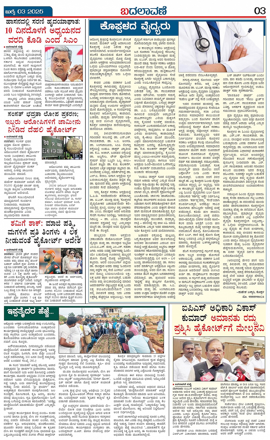 ಬದಲಾವಣೆ 03 JULY 2025 Page: 3 July 03, 2025 << First << 3 >> Last >> Page 1Page 2Page 3Page 4 × ಬದಲಾವಣೆ 03 JULY 2025 page-1page-2page-3page-4 << First << 3 >> Last >> page-1page-2page-3page-4 page-3