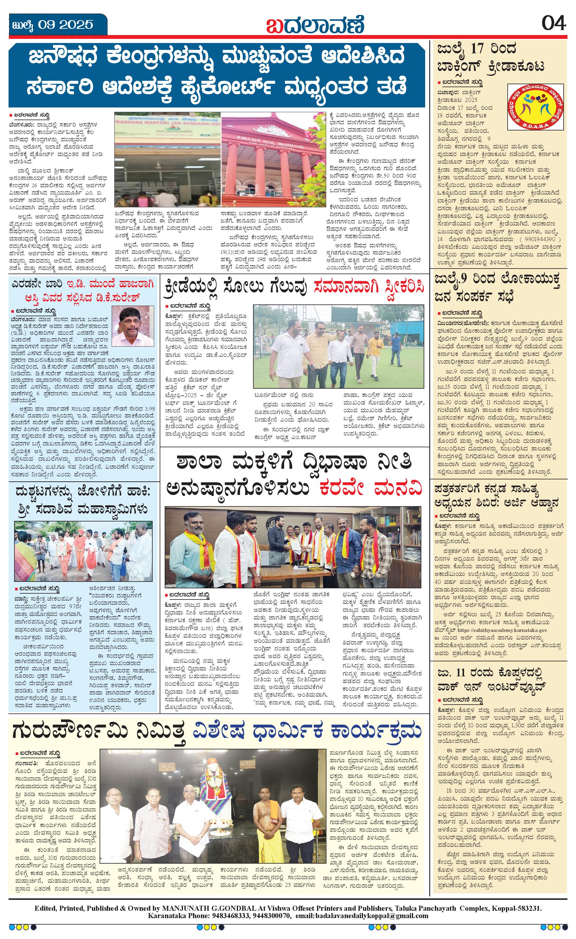 ಬದಲಾವಣೆ 09 JULY 2025 Page: 4 July 09, 2025 << First << 4 >> Last >> Page 1Page 2Page 3Page 4 × ಬದಲಾವಣೆ 09 JULY 2025 page-1page-2page-3page-4 << First << 4 >> Last >> page-1page-2page-3page-4 page-4
