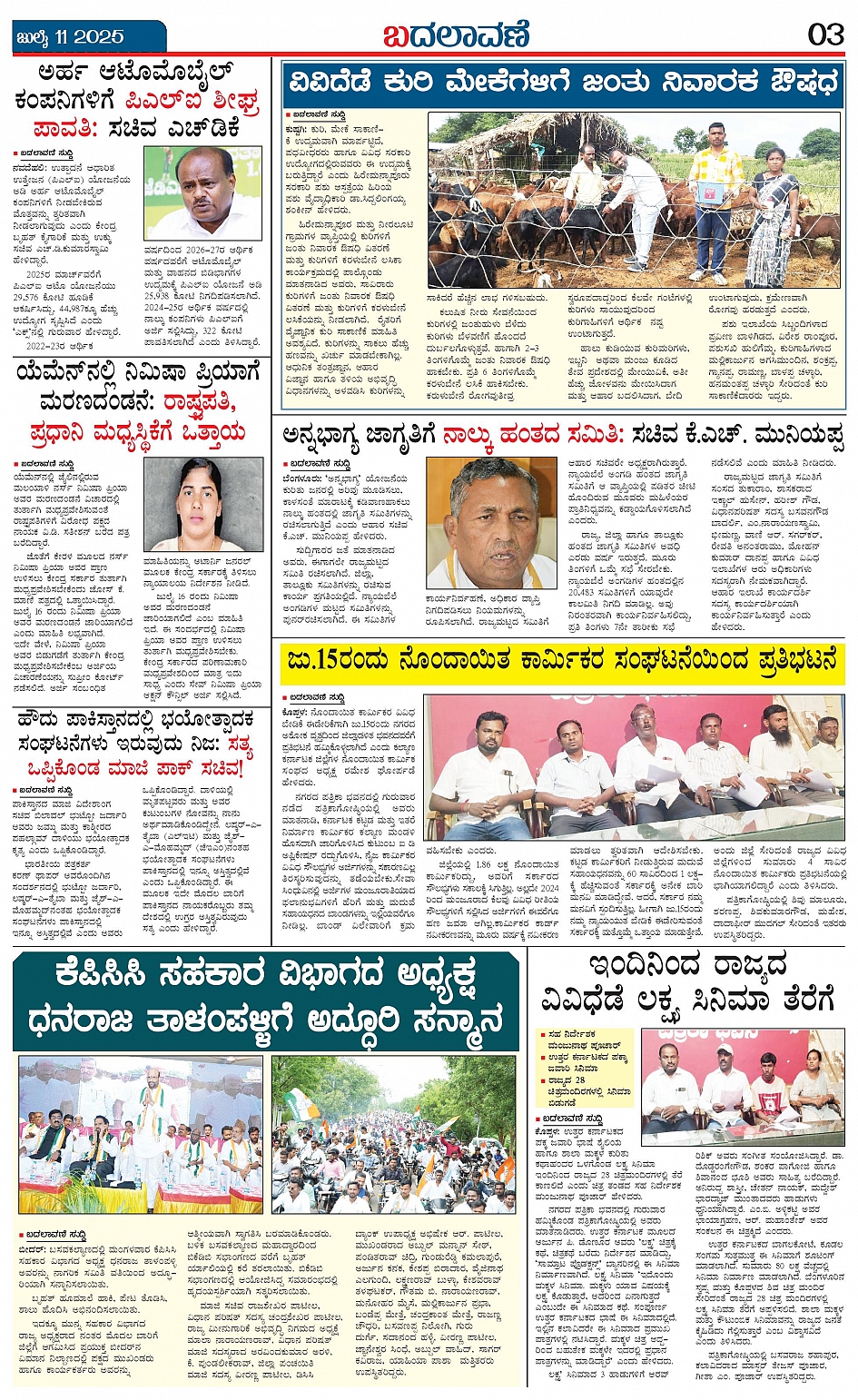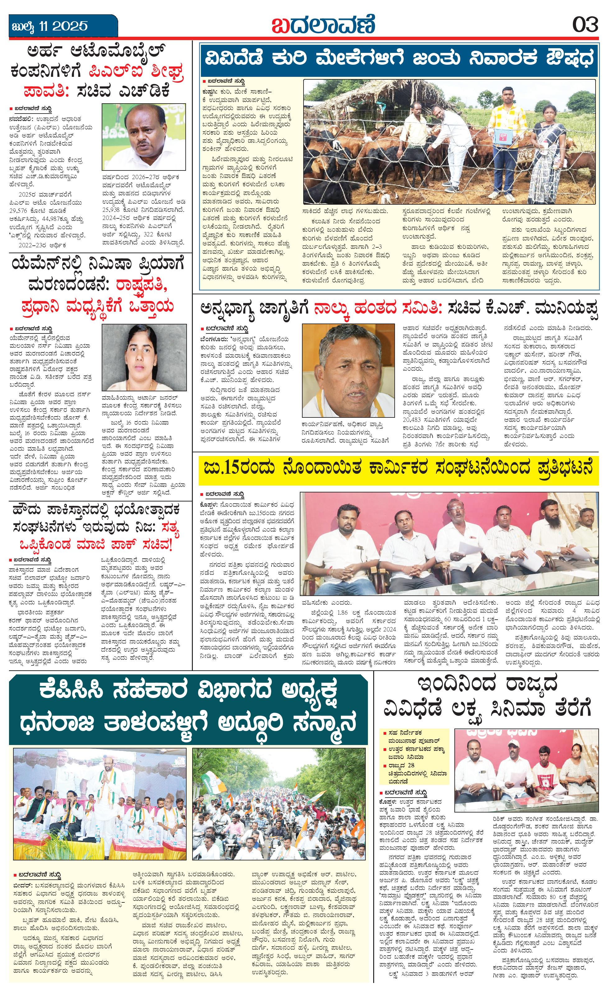 ಬದಲಾವಣೆ 11 JULY 2025 Page: 3 July 11, 2025 << First << 3 >> Last >> Page 1Page 2Page 3Page 4 × ಬದಲಾವಣೆ 11 JULY 2025 page-1page-2page-3page-4 << First << 3 >> Last >> page-1page-2page-3page-4 page-3