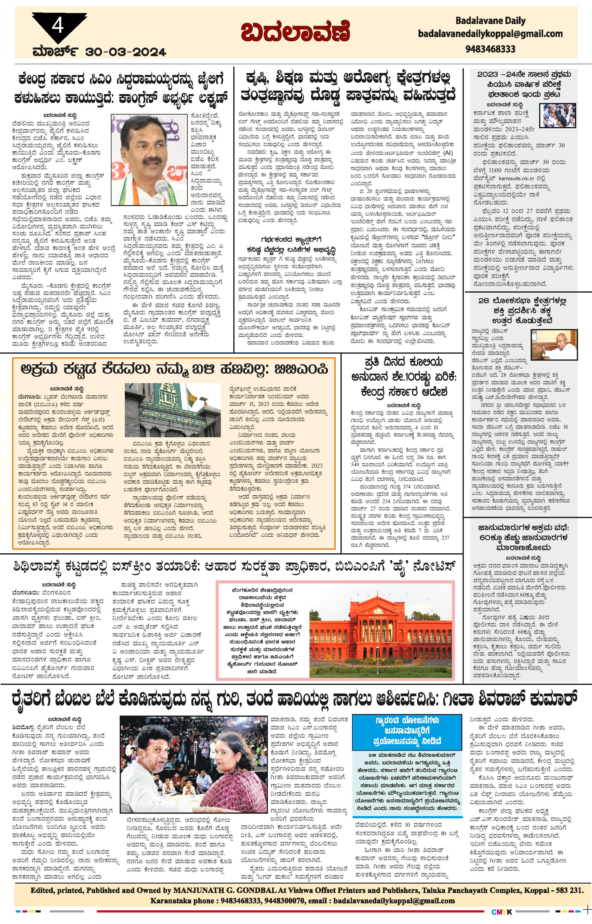 ಬದಲಾವಣೆ 30 Mar 2024 Page: 4 March 30, 2024 << First << 4 >> Last >> Page 1Page 2Page 3Page 4 × ಬದಲಾವಣೆ 30 Mar 2024 page-1page-2page-3page-4 << First << 4 >> Last >> page-1page-2page-3page-4 page-4
