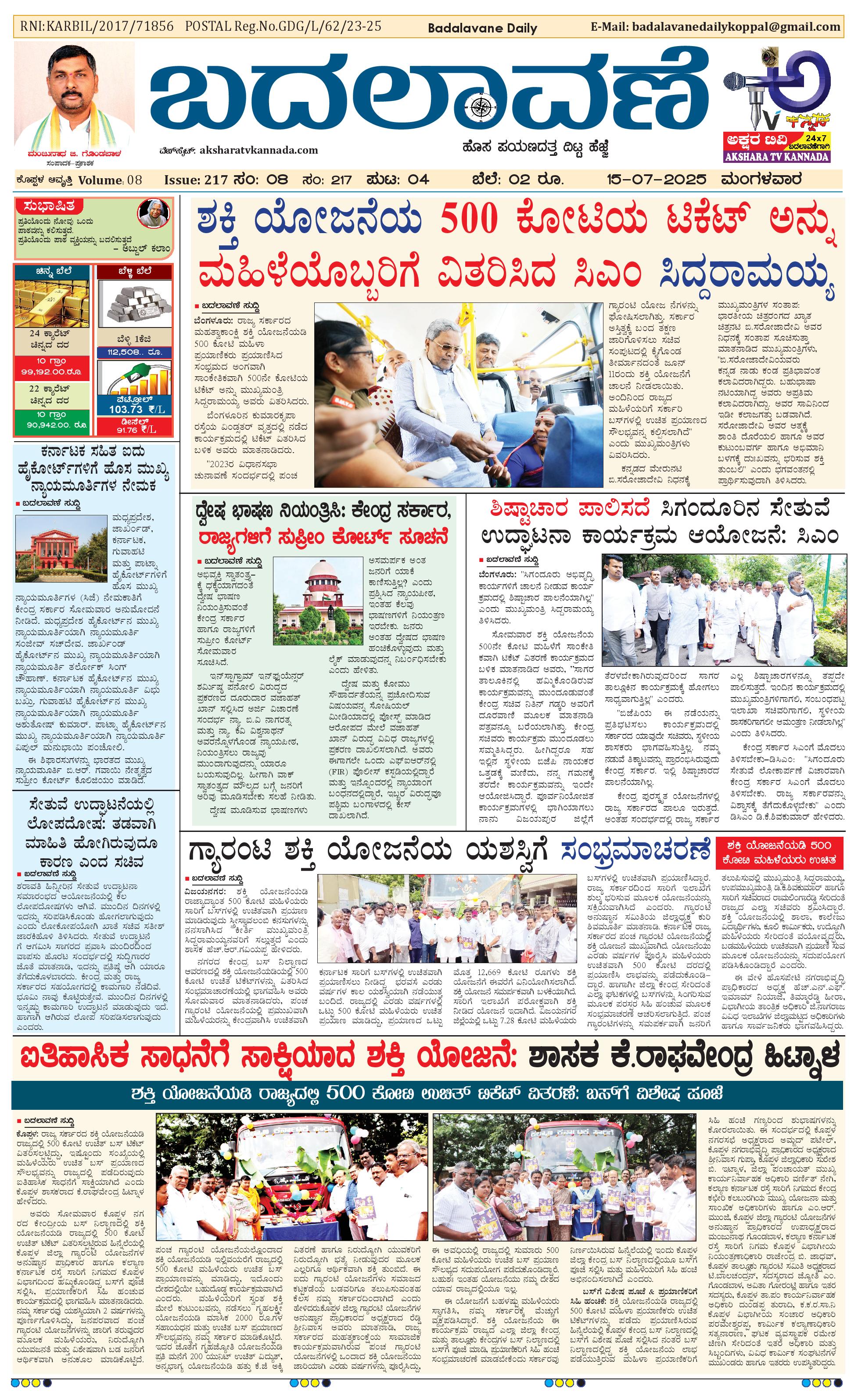 ಬದಲಾವಣೆ 15 JULY 2025 July 15, 2025 << First << 1 >> Last >> Page 1Page 2Page 3Page 4 × ಬದಲಾವಣೆ 15 JULY 2025 page-1page-2page-3page-4 << First << 1 >> Last >> page-1page-2page-3page-4 page-1