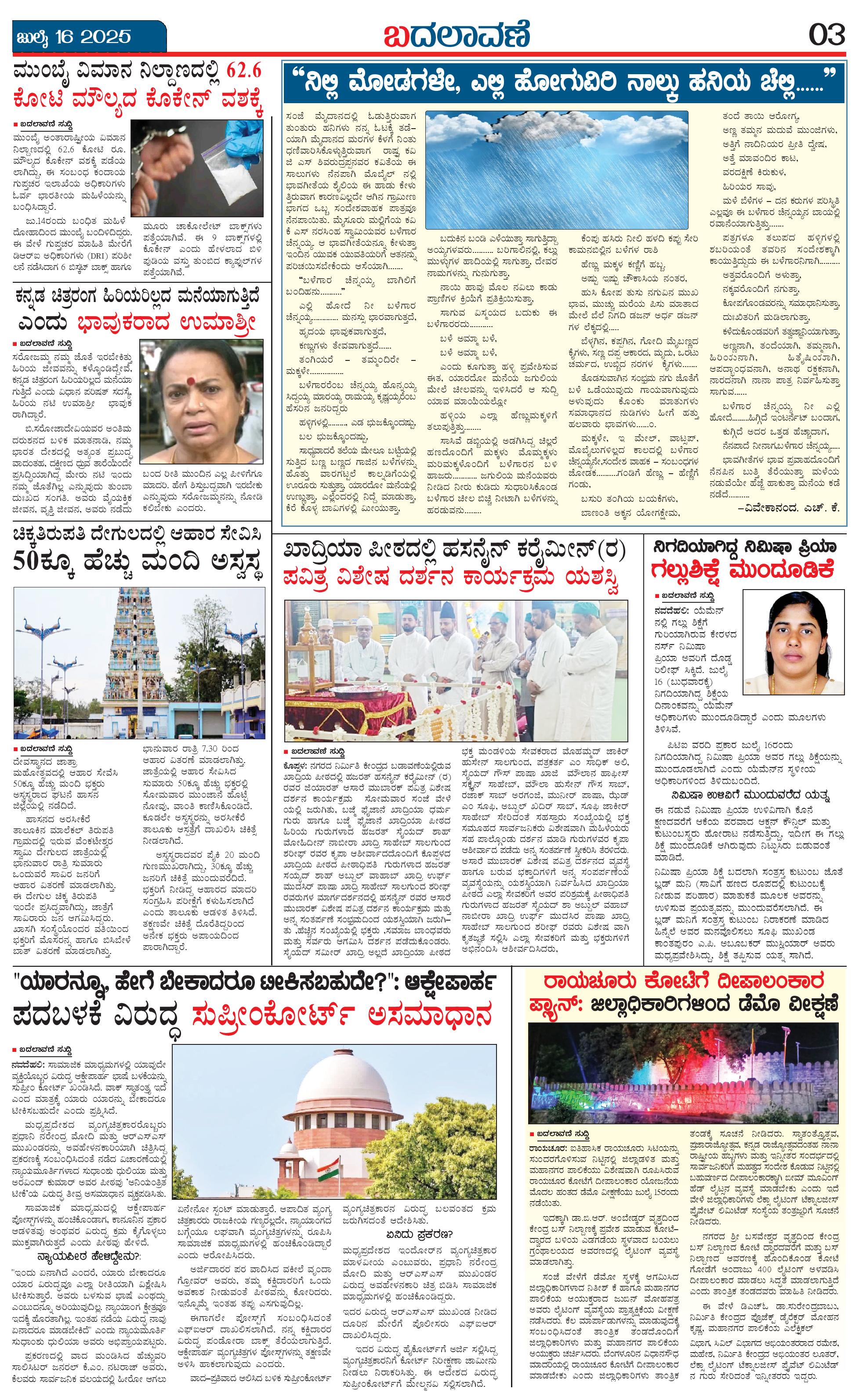 ಬದಲಾವಣೆ 16 JULY 2025 Page: 3 July 16, 2025 << First << 3 >> Last >> Page 1Page 2Page 3Page 4 × ಬದಲಾವಣೆ 16 JULY 2025 page-1page-2page-3page-4 << First << 3 >> Last >> page-1page-2page-3page-4 page-3