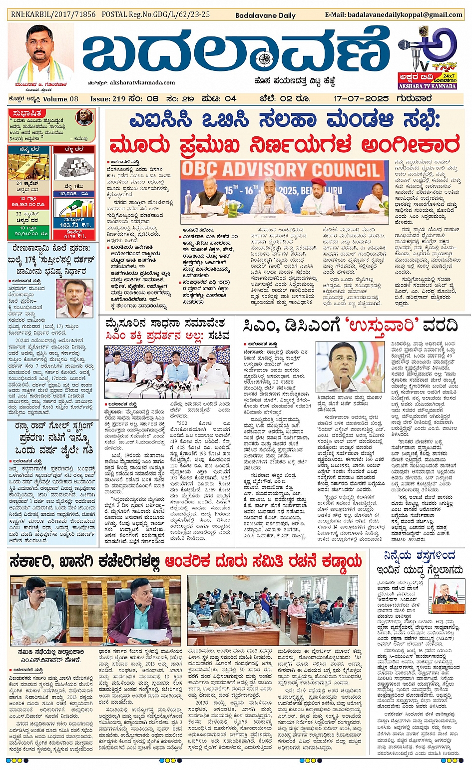 ಬದಲಾವಣೆ 17 JULY 2025 July 17, 2025 << First << 1 >> Last >> Page 1Page 2Page 3Page 4 × ಬದಲಾವಣೆ 17 JULY 2025 page-1page-2page-3page-4 << First << 1 >> Last >> page-1page-2page-3page-4 page-1