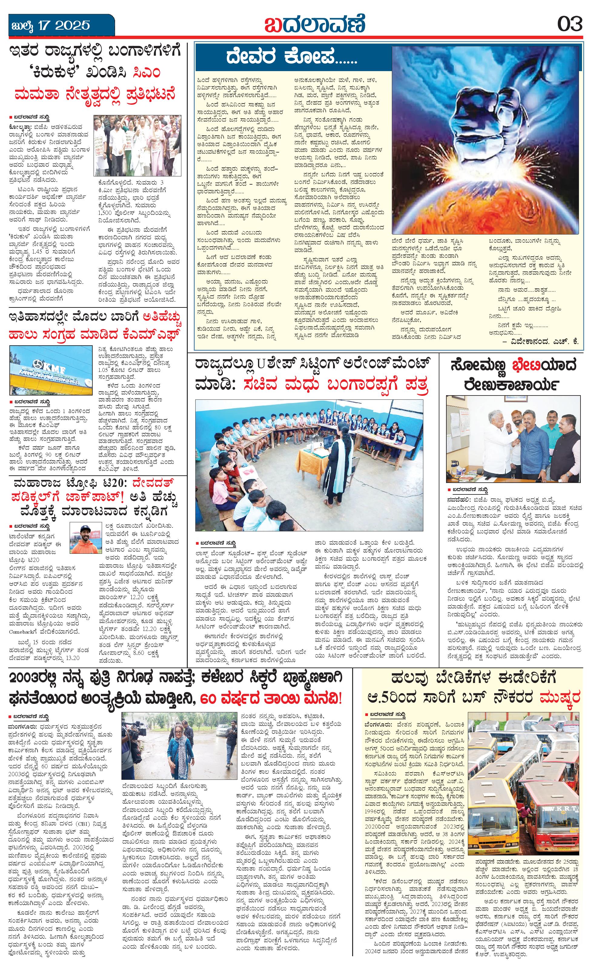 ಬದಲಾವಣೆ 17 JULY 2025 Page: 3 July 17, 2025 << First << 3 >> Last >> Page 1Page 2Page 3Page 4 × ಬದಲಾವಣೆ 17 JULY 2025 page-1page-2page-3page-4 << First << 3 >> Last >> page-1page-2page-3page-4 page-3