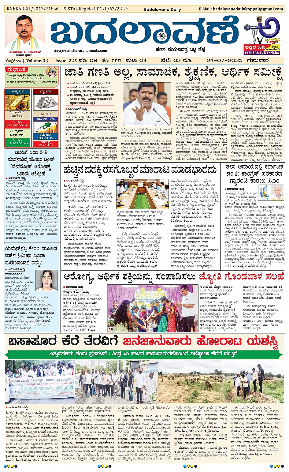 ಬದಲಾವಣೆ 24 JULY 2025 July 24, 2025 << First << 1 >> Last >> Page 1Page 2Page 3Page 4 × ಬದಲಾವಣೆ 24 JULY 2025 page-1page-2page-3page-4 << First << 1 >> Last >> page-1page-2page-3page-4 page-1