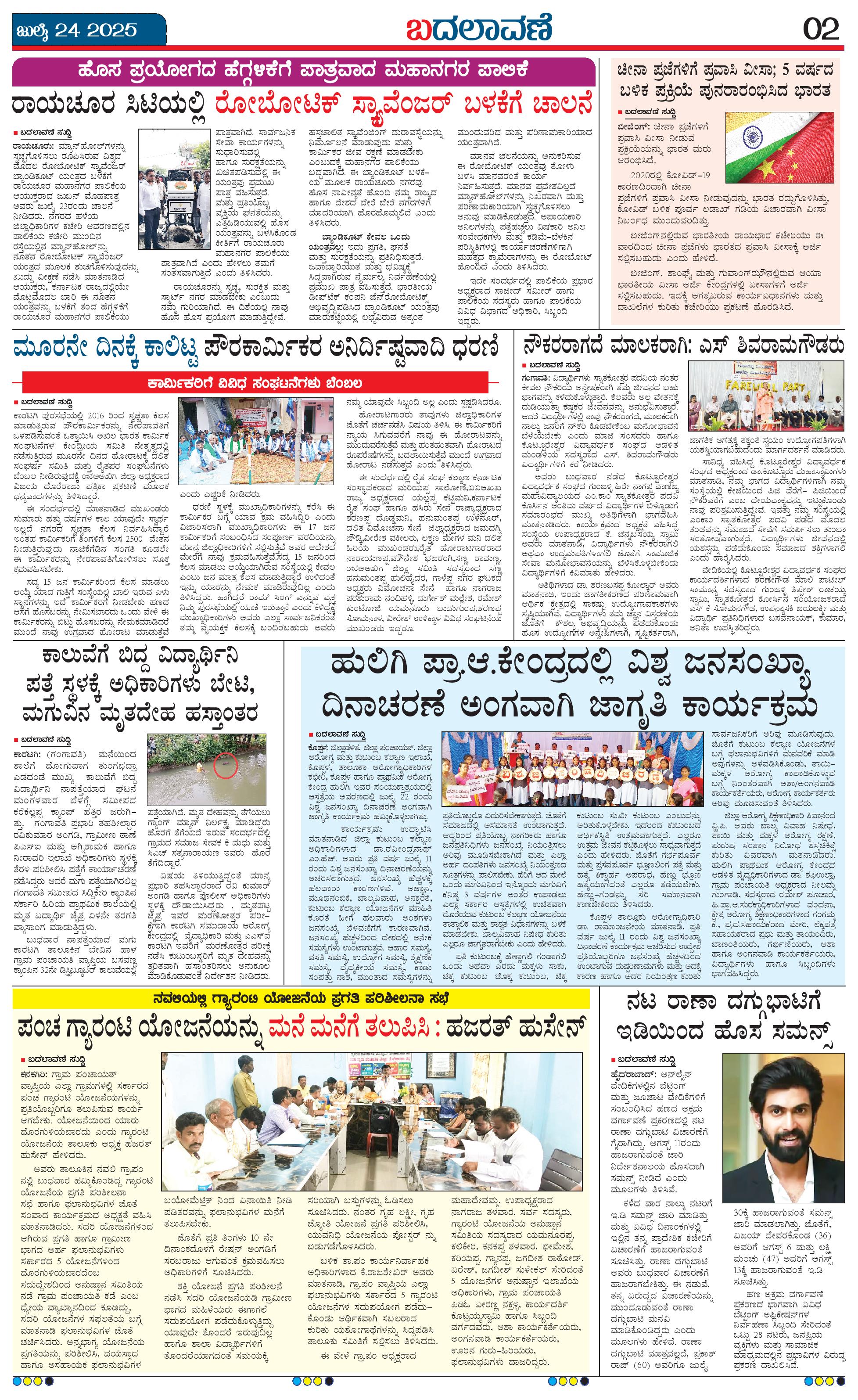 ಬದಲಾವಣೆ 24 JULY 2025 Page: 2 July 24, 2025 << First << 2 >> Last >> Page 1Page 2Page 3Page 4 × ಬದಲಾವಣೆ 24 JULY 2025 page-1page-2page-3page-4 << First << 2 >> Last >> page-1page-2page-3page-4 page-2