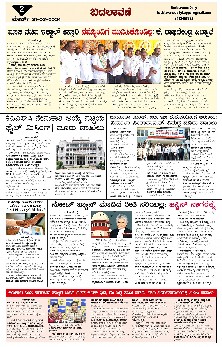 ಬದಲಾವಣೆ 31 Mar 2024 Page: 2 March 31, 2024 << First << 2 >> Last >> Page 1Page 2Page 3Page 4 × ಬದಲಾವಣೆ 31 Mar 2024 page-1page-2page-3page-4 << First << 2 >> Last >> page-1page-2page-3page-4 page-2