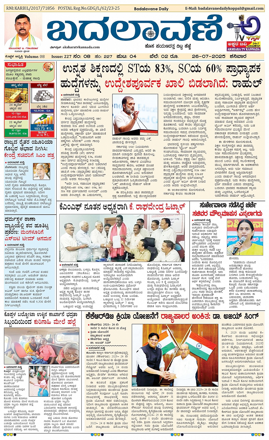 ಬದಲಾವಣೆ 26 JULY 2025 July 26, 2025 << First << 1 >> Last >> Page 1Page 2Page 3Page 4 × ಬದಲಾವಣೆ 26 JULY 2025 page-1page-2page-3page-4 << First << 1 >> Last >> page-1page-2page-3page-4 page-1