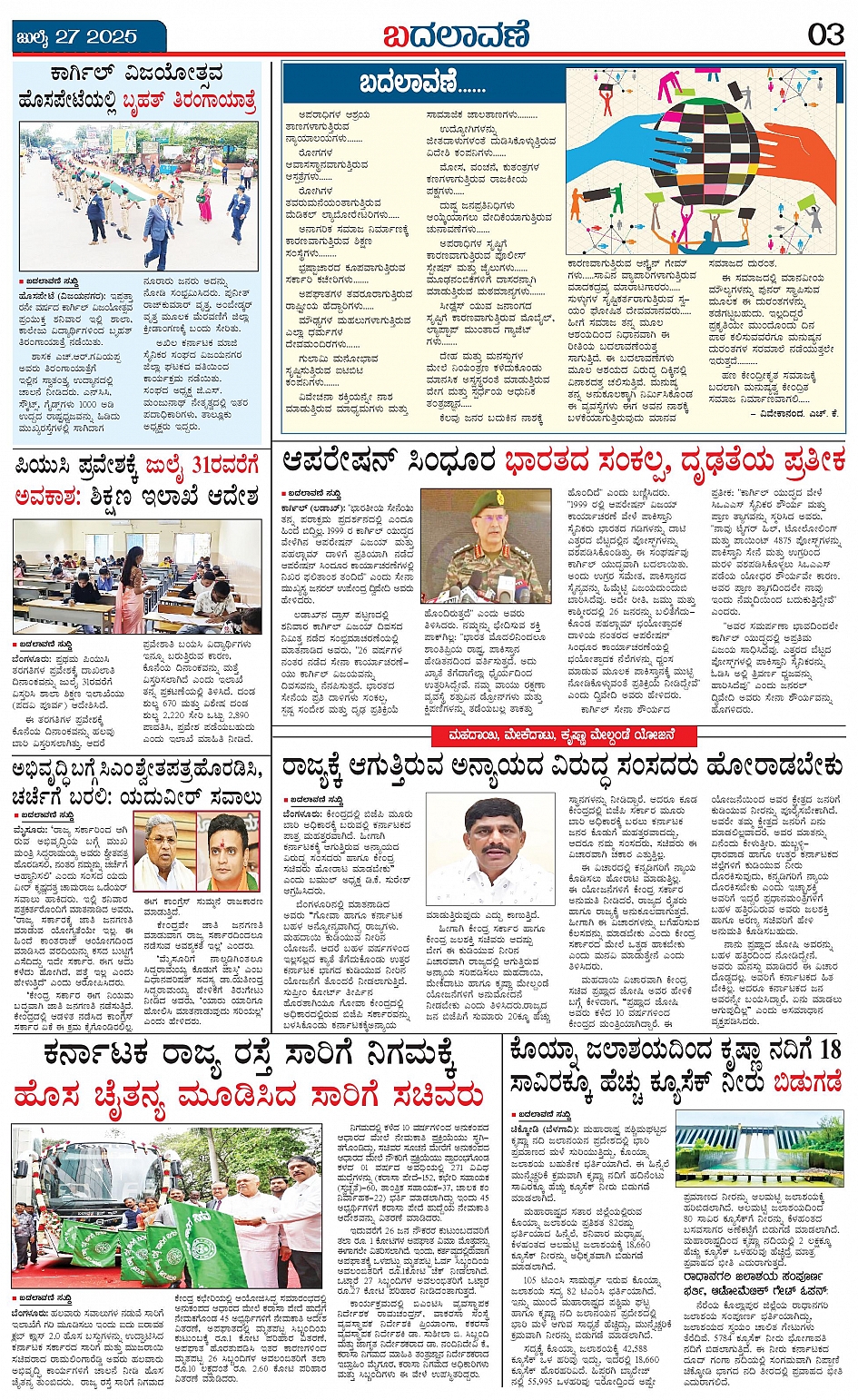 ಬದಲಾವಣೆ 27 JULY 2025 Page: 3 July 27, 2025 << First << 3 >> Last >> Page 1Page 2Page 3Page 4 × ಬದಲಾವಣೆ 27 JULY 2025 page-1page-2page-3page-4 << First << 3 >> Last >> page-1page-2page-3page-4 page-3
