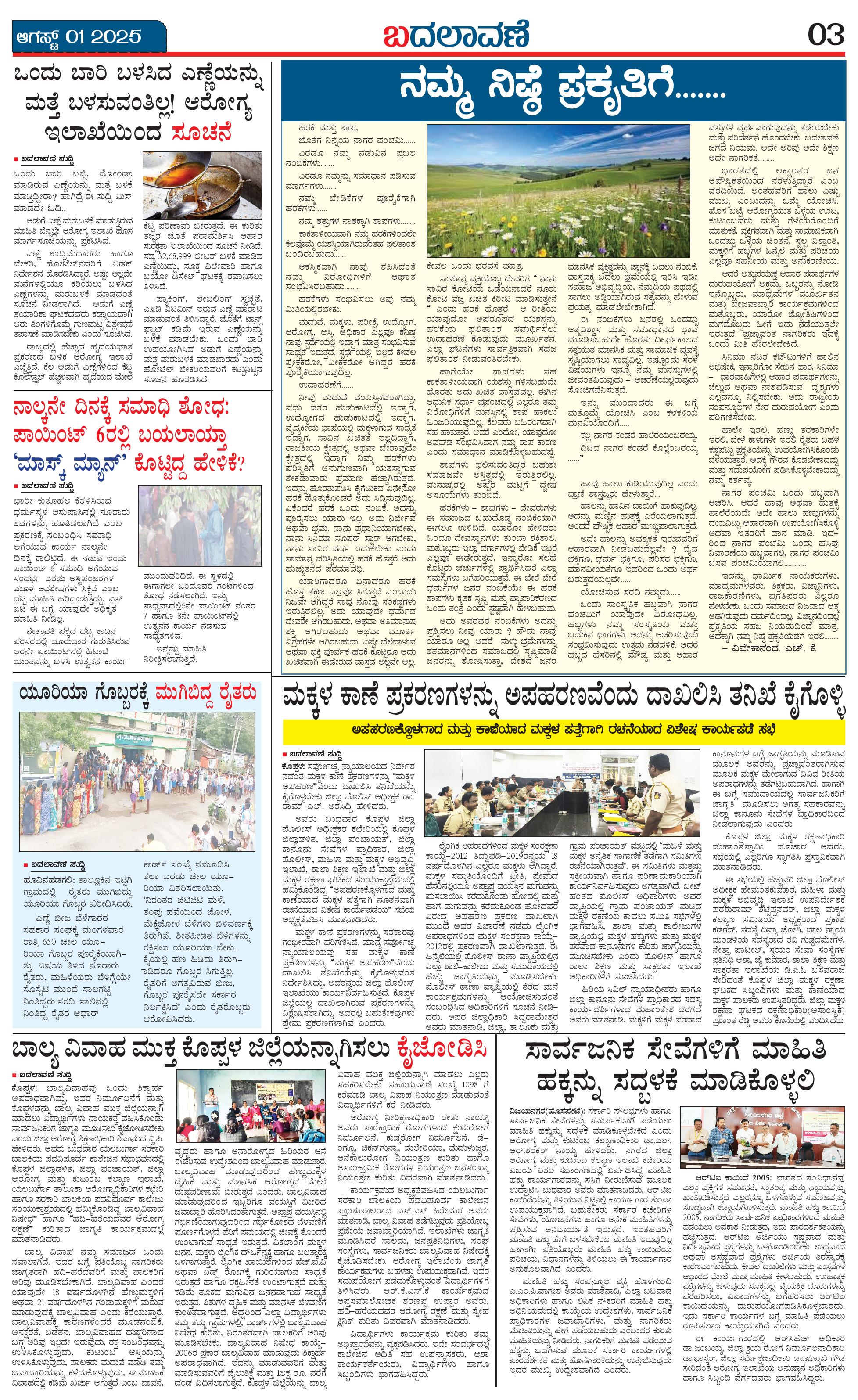 ಬದಲಾವಣೆ 01 AUGUST 2025 Page: 3 August 01, 2025 << First << 3 >> Last >> Page 1Page 2Page 3Page 4 × ಬದಲಾವಣೆ 01 AUGUST 2025 page-1page-2page-3page-4 << First << 3 >> Last >> page-1page-2page-3page-4 page-3