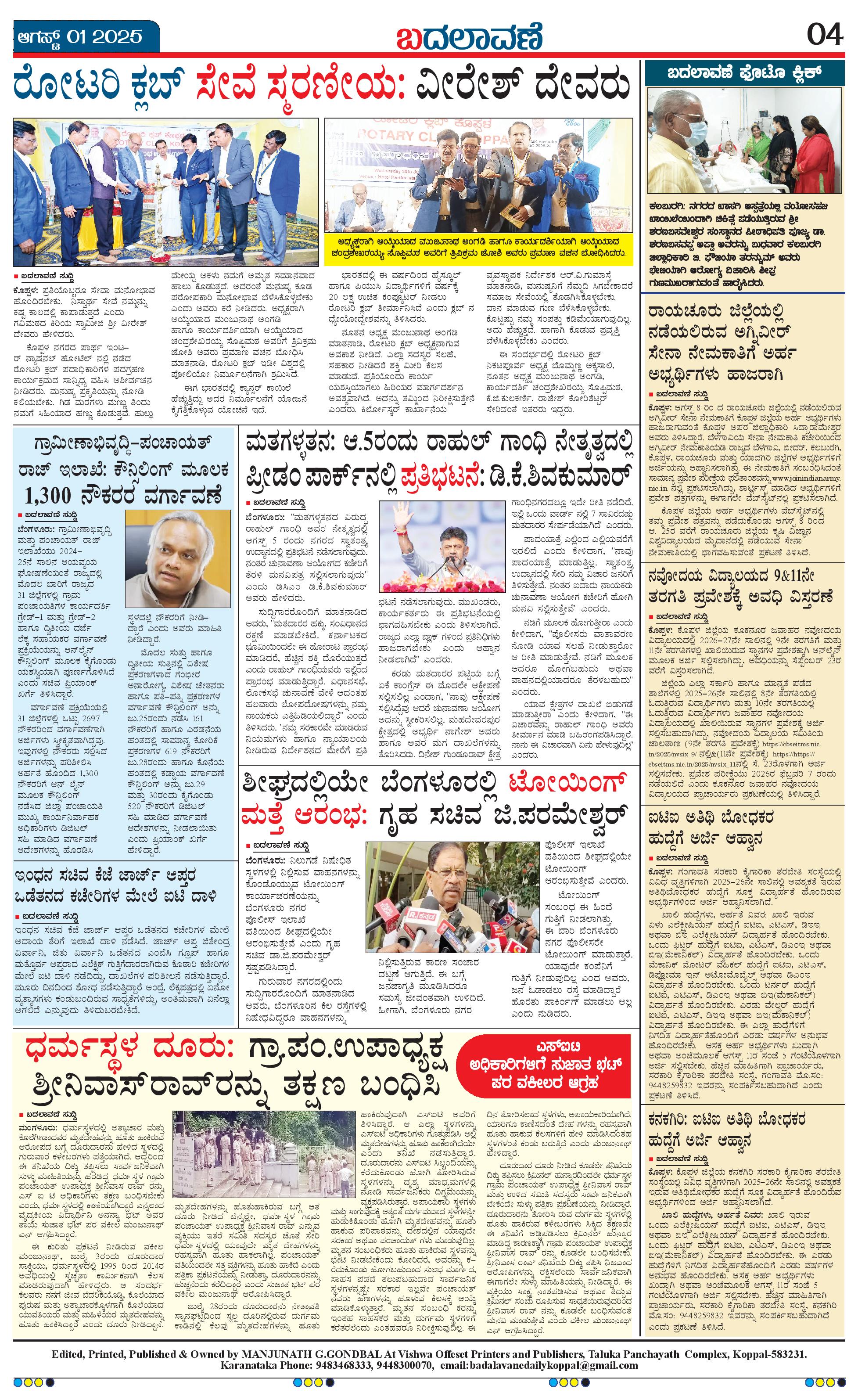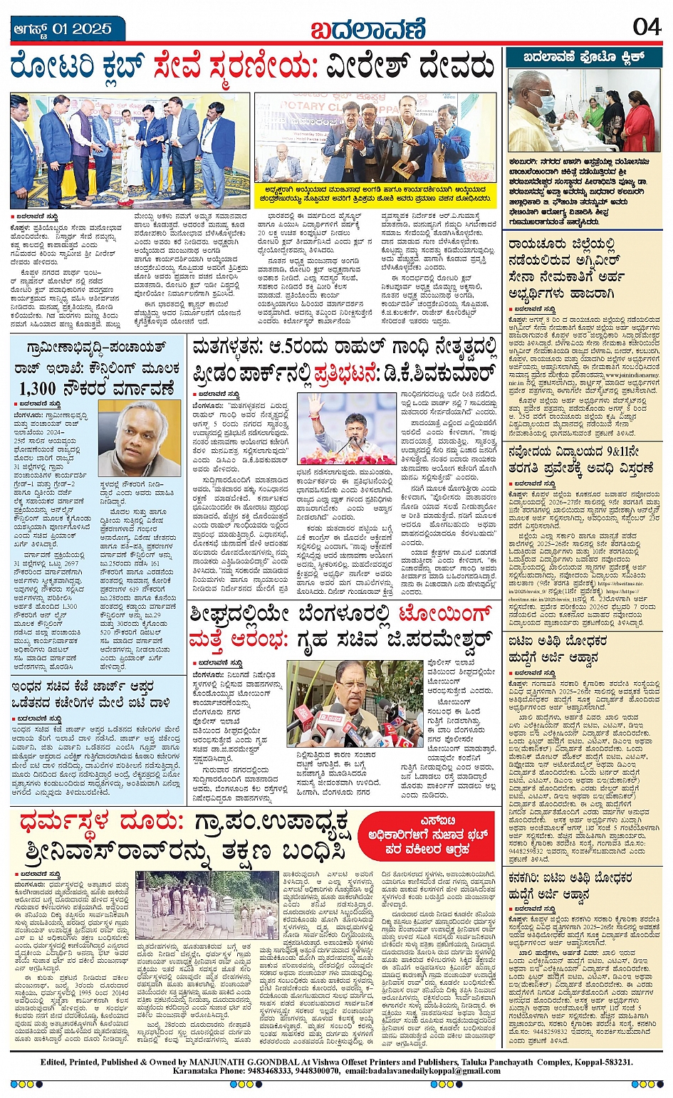 ಬದಲಾವಣೆ 01 AUGUST 2025 Page: 4 August 01, 2025 << First << 4 >> Last >> Page 1Page 2Page 3Page 4 × ಬದಲಾವಣೆ 01 AUGUST 2025 page-1page-2page-3page-4 << First << 4 >> Last >> page-1page-2page-3page-4 page-4