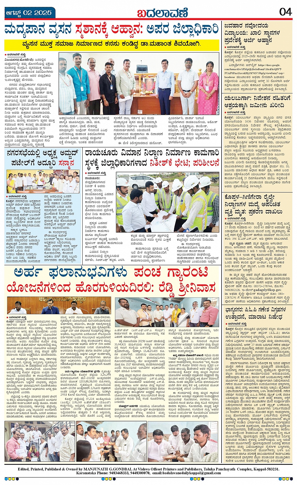 ಬದಲಾವಣೆ 02 AUGUST 2025 Page: 4 August 02, 2025 << First << 4 >> Last >> Page 1Page 2Page 3Page 4 × ಬದಲಾವಣೆ 02 AUGUST 2025 page-1page-2page-3page-4 << First << 4 >> Last >> page-1page-2page-3page-4 page-4