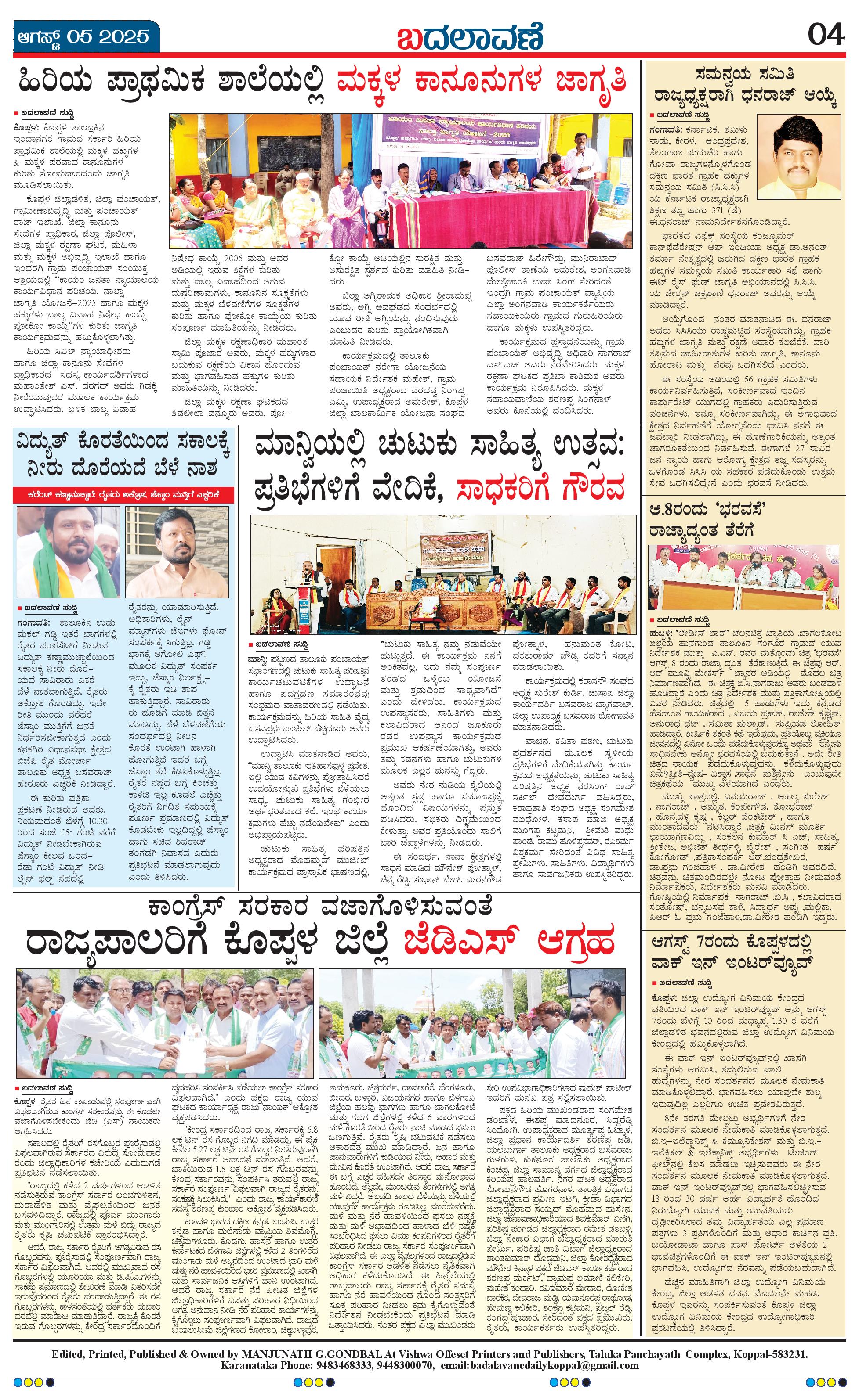 ಬದಲಾವಣೆ 05 AUGUST 2025 Page: 4 August 05, 2025 << First << 4 >> Last >> Page 1Page 2Page 3Page 4 × ಬದಲಾವಣೆ 05 AUGUST 2025 page-1page-2page-3page-4 << First << 4 >> Last >> page-1page-2page-3page-4 page-4