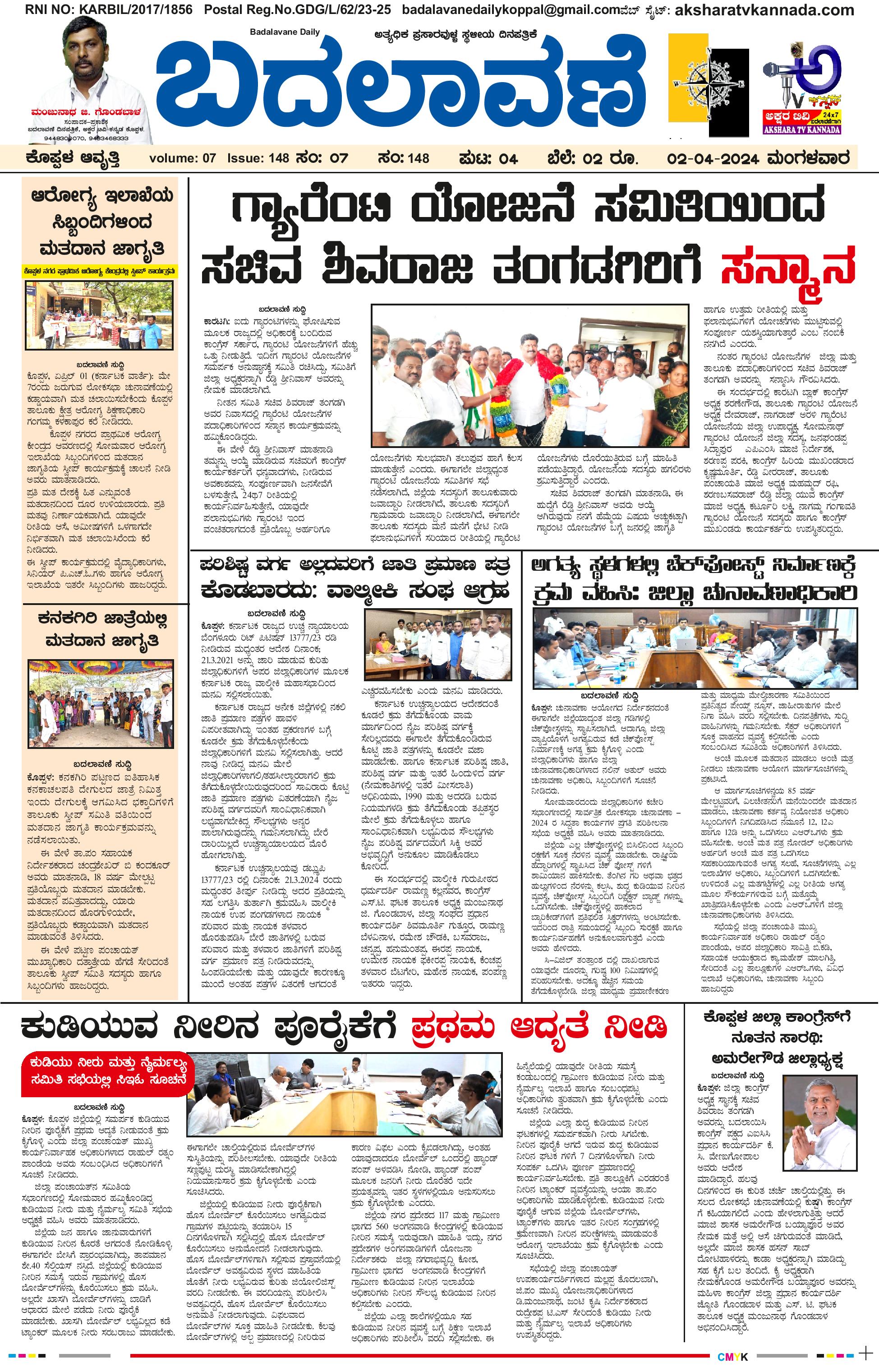 ಬದಲಾವಣೆ 02 April 2024 April 02, 2024 << First << 1 >> Last >> Page 1Page 2Page 3Page 4 × ಬದಲಾವಣೆ 02 April 2024 page-1page-2page-3page-4 << First << 1 >> Last >> page-1page-2page-3page-4 page-1