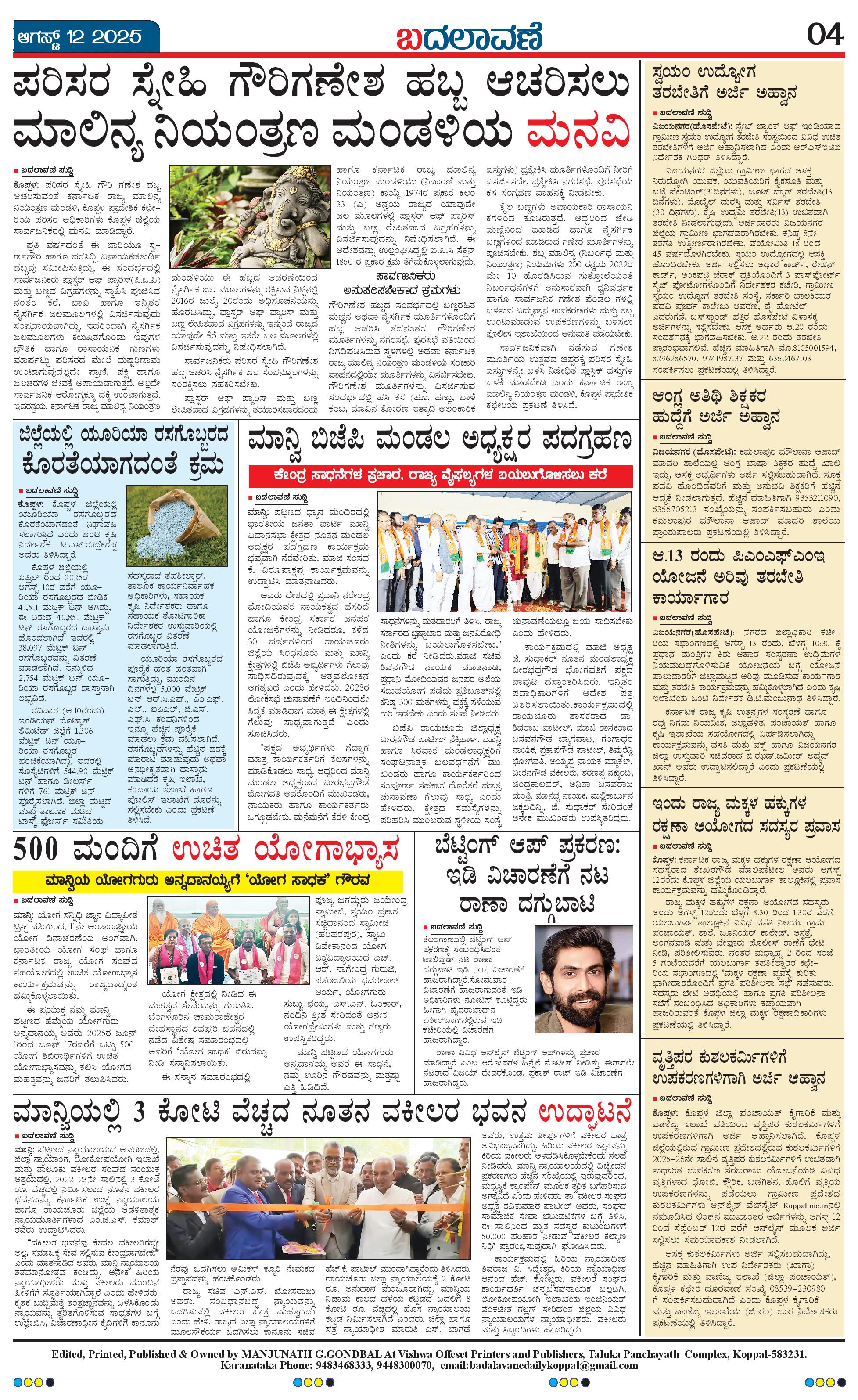 ಬದಲಾವಣೆ 12 AUGUST 2025 Page: 4 August 12, 2025 << First << 4 >> Last >> Page 1Page 2Page 3Page 4 × ಬದಲಾವಣೆ 12 AUGUST 2025 page-1page-2page-3page-4 << First << 4 >> Last >> page-1page-2page-3page-4 page-4