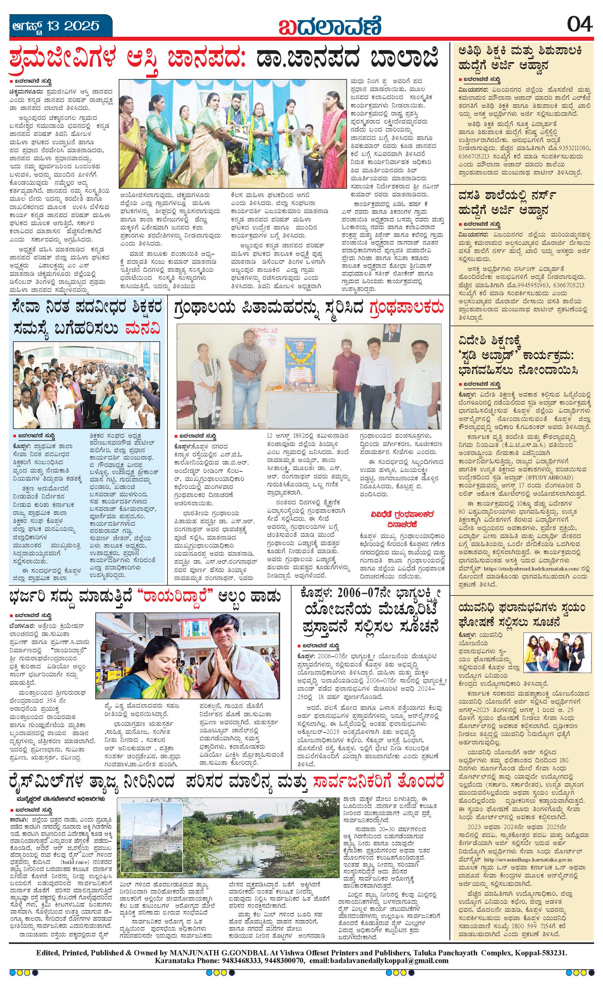 ಬದಲಾವಣೆ 13 AUGUST 2025 Page: 4 August 13, 2025 << First << 4 >> Last >> Page 1Page 2Page 3Page 4 × ಬದಲಾವಣೆ 13 AUGUST 2025 page-1page-2page-3page-4 << First << 4 >> Last >> page-1page-2page-3page-4 page-4