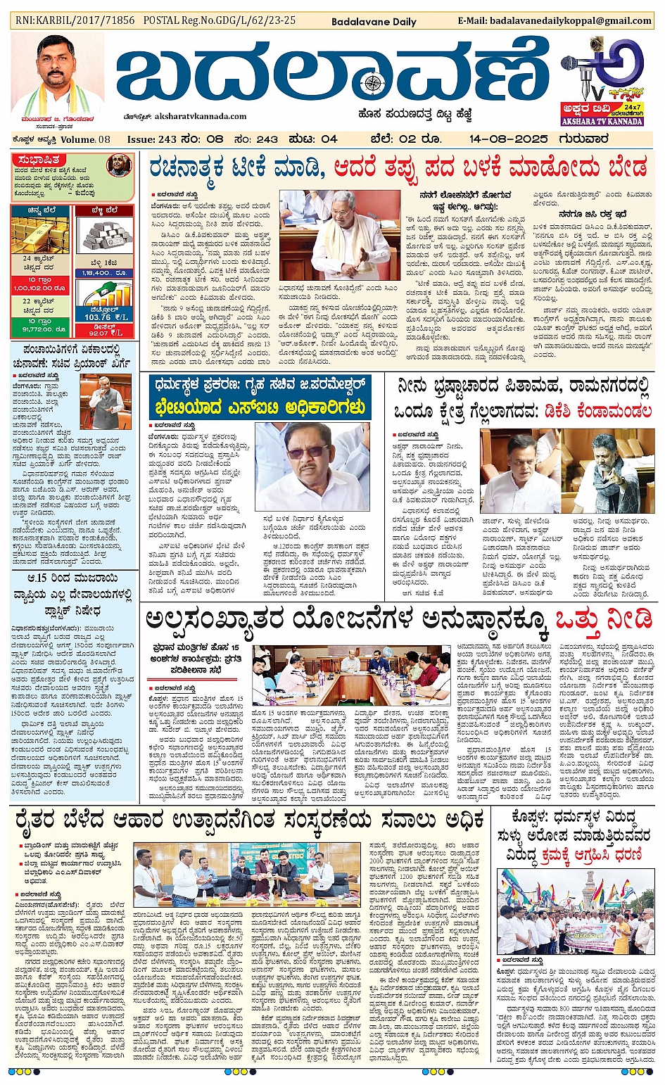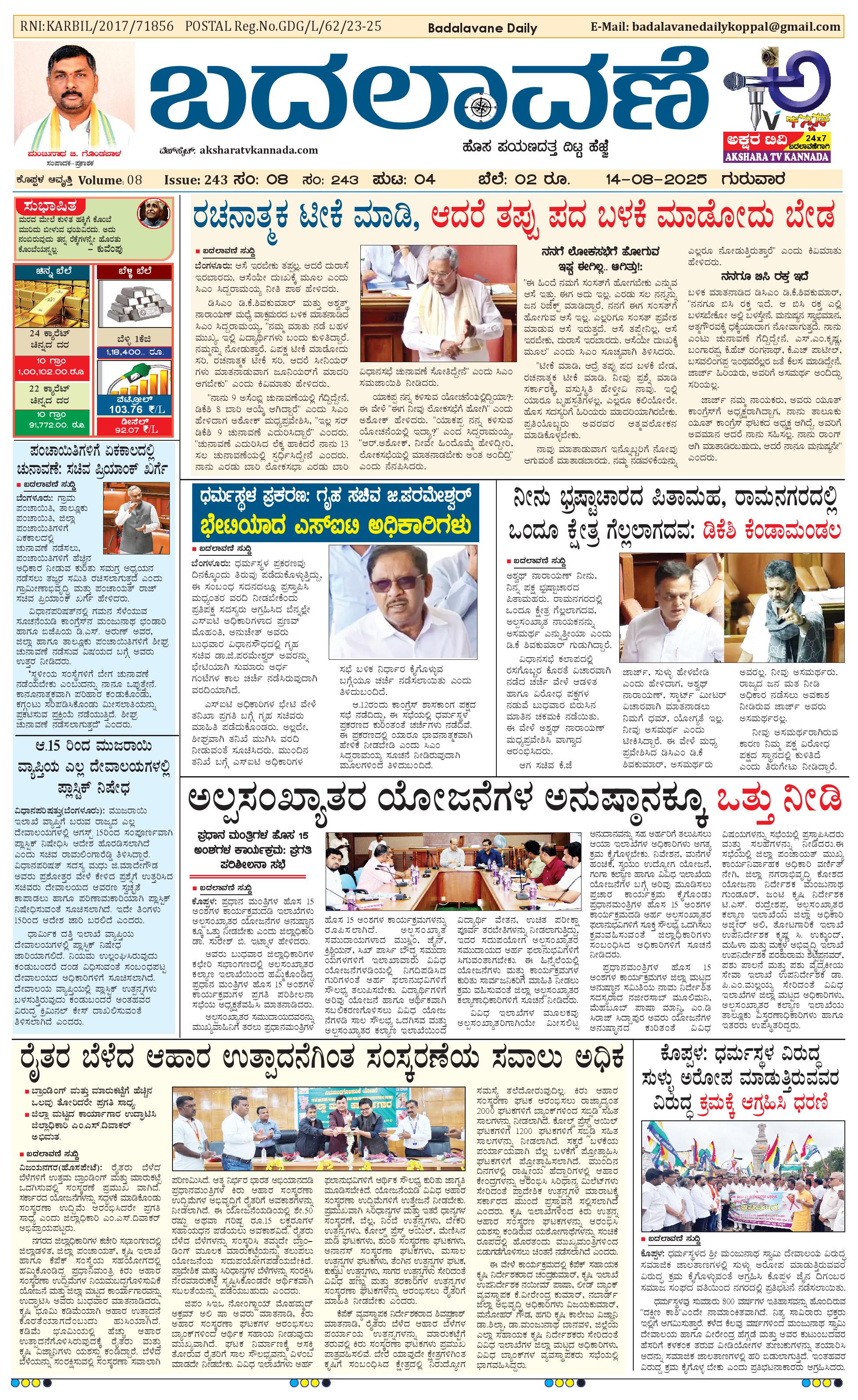 ಬದಲಾವಣೆ 14 AUGUST 2025 August 14, 2025 << First << 1 >> Last >> Page 1Page 2Page 3Page 4 × ಬದಲಾವಣೆ 14 AUGUST 2025 page-1page-2page-3page-4 << First << 1 >> Last >> page-1page-2page-3page-4 page-1