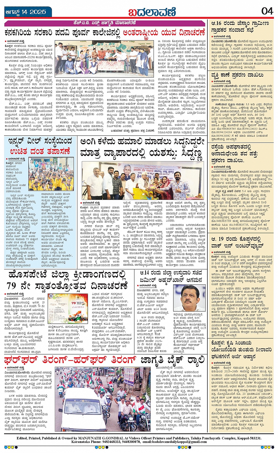 ಬದಲಾವಣೆ 14 AUGUST 2025 Page: 4 August 14, 2025 << First << 4 >> Last >> Page 1Page 2Page 3Page 4 × ಬದಲಾವಣೆ 14 AUGUST 2025 page-1page-2page-3page-4 << First << 4 >> Last >> page-1page-2page-3page-4 page-4
