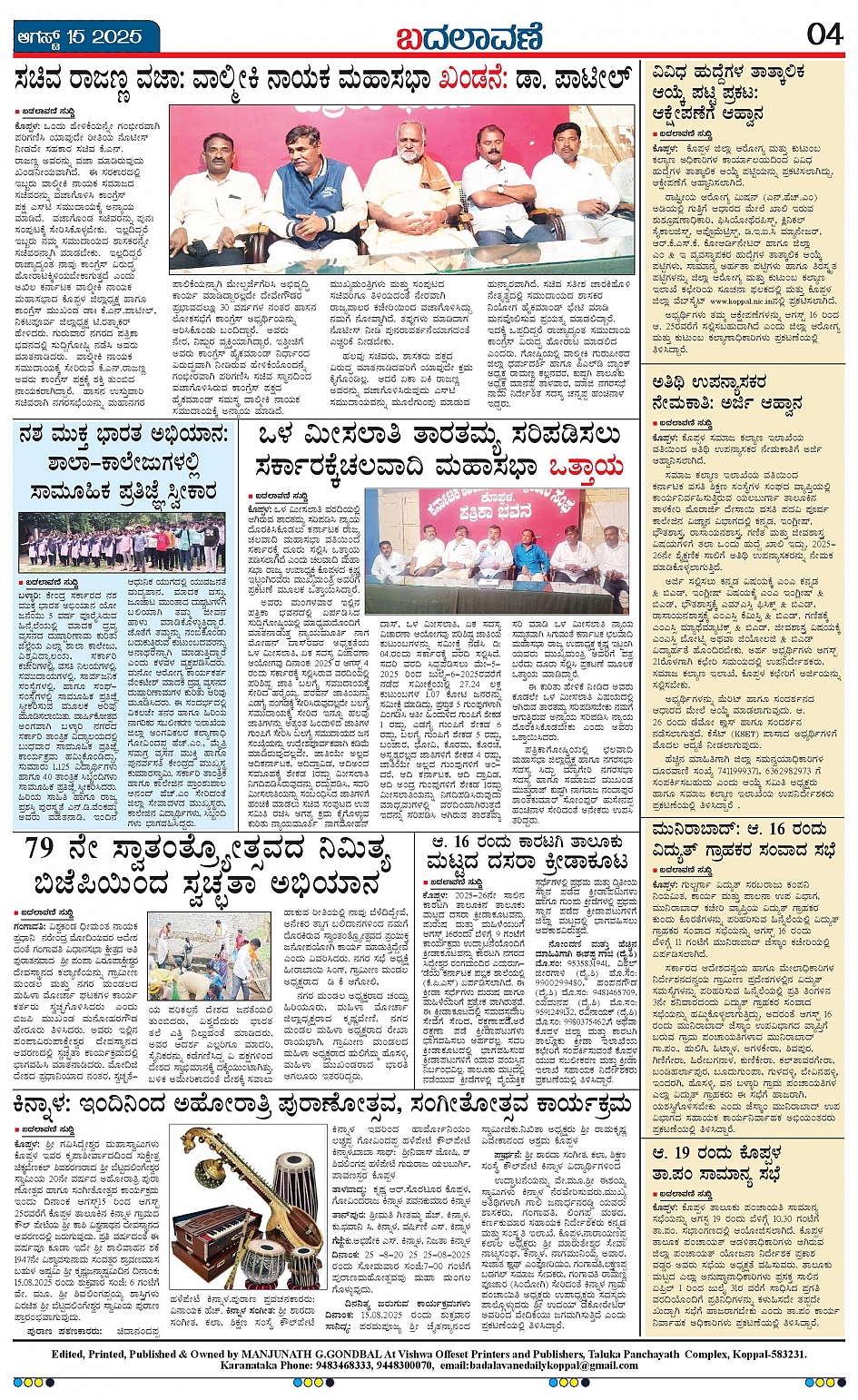ಬದಲಾವಣೆ 15 AUGUST 2025 Page: 4 August 15, 2025 << First << 4 >> Last >> Page 1Page 2Page 3Page 4 × ಬದಲಾವಣೆ 15 AUGUST 2025 page-1page-2page-3page-4 << First << 4 >> Last >> page-1page-2page-3page-4 page-4
