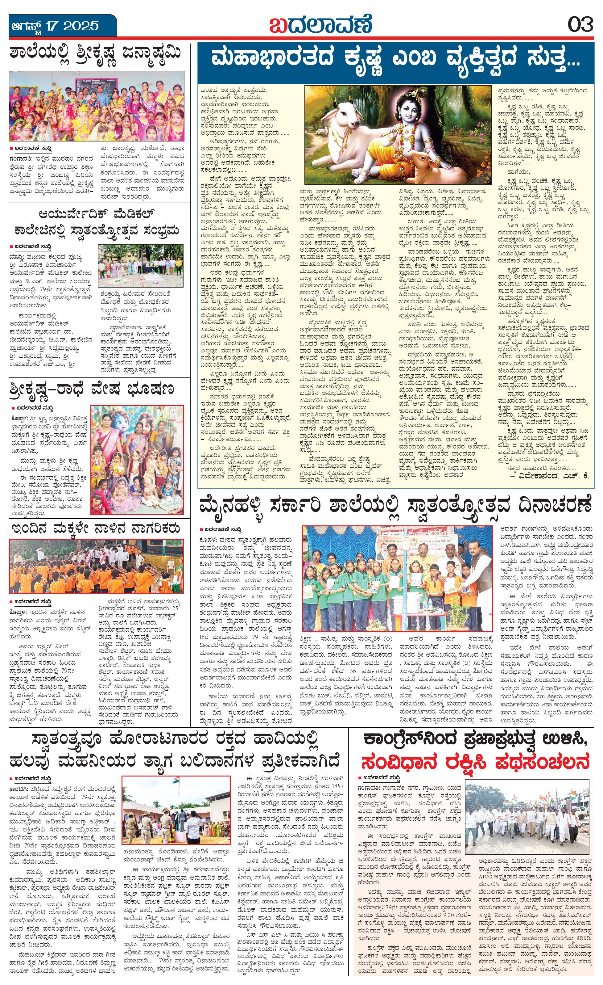 ಬದಲಾವಣೆ 17 AUGUST 2025 Page: 3 August 17, 2025 << First << 3 >> Last >> Page 1Page 2Page 3Page 4 × ಬದಲಾವಣೆ 17 AUGUST 2025 page-1page-2page-3page-4 << First << 3 >> Last >> page-1page-2page-3page-4 page-3