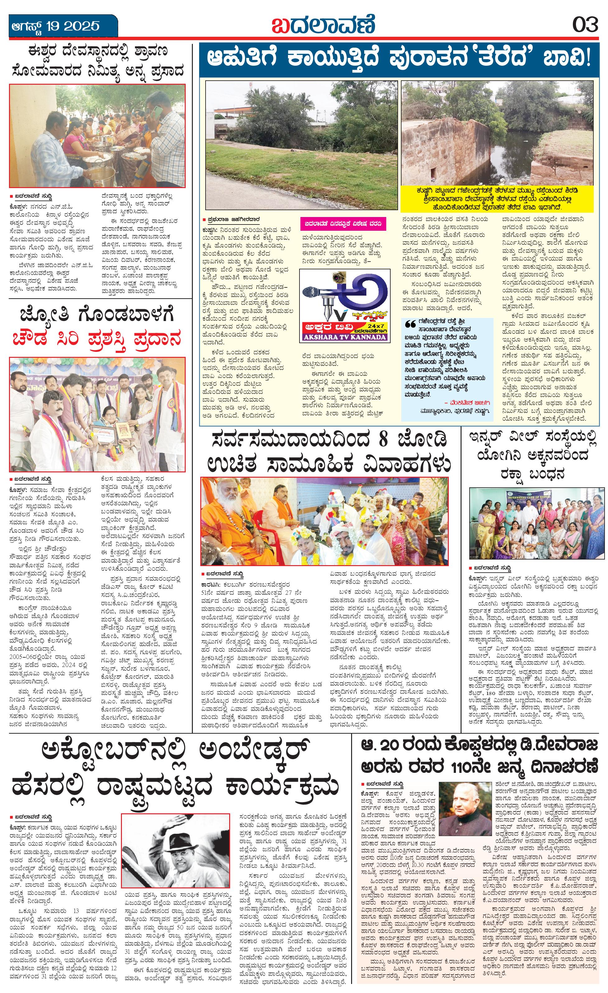 ಬದಲಾವಣೆ 19 AUGUST 2025 Page: 3 August 19, 2025 << First << 3 >> Last >> Page 1Page 2Page 3Page 4 × ಬದಲಾವಣೆ 19 AUGUST 2025 page-1page-2page-3page-4 << First << 3 >> Last >> page-1page-2page-3page-4 page-3