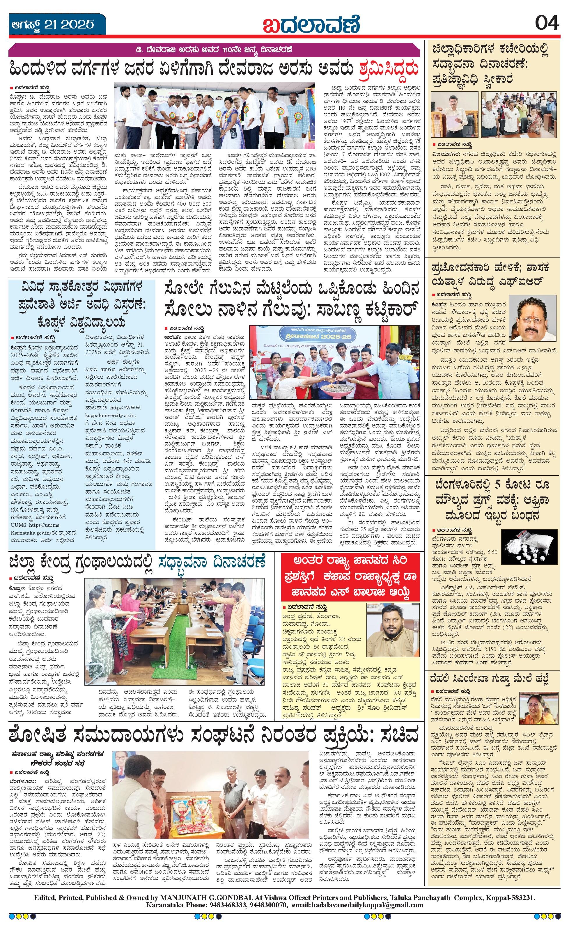ಬದಲಾವಣೆ 21 AUGUST 2025 Page: 4 August 21, 2025 << First << 4 >> Last >> Page 1Page 2Page 3Page 4 × ಬದಲಾವಣೆ 21 AUGUST 2025 page-1page-2page-3page-4 << First << 4 >> Last >> page-1page-2page-3page-4 page-4